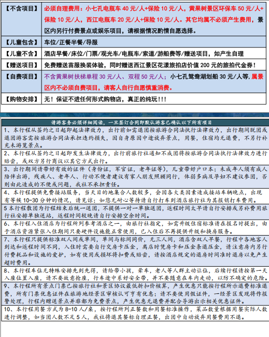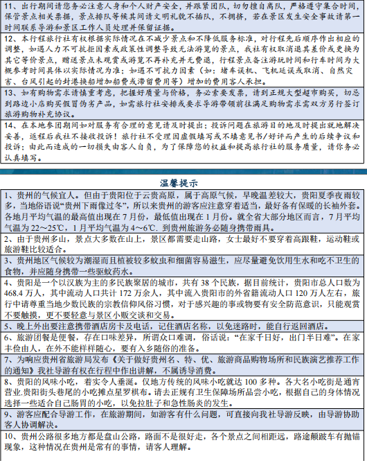 温馨提示: 当天所有行程为赠送(不参加不退费)请根据自身返程交通时间选择是否参加赠送行程;选择赠送行 程的返程航班时间需订在飞机 15:00 以后;火车 14:00 后,以防不可抗力因素而影响返程时间产生 损失,下午统一送团【须提前/推迟走的请自行打车,费用自理;需要我社单独送的客人收取 30 元/ 人】。