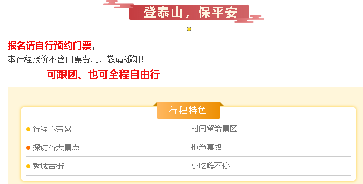 3.住宿:不含(如果需要住宿,提前可代为安排泰山附近住宿,准三80元/人、携程三钻100元/人、准四120元/人等酒店,费用自理)