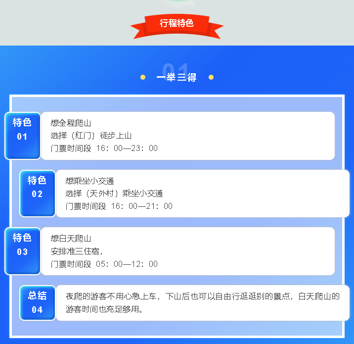 2、(1)假如报名没有21点前从天外村坐小交通上山的游客(则改为正常下午5点—5点30分发车)。