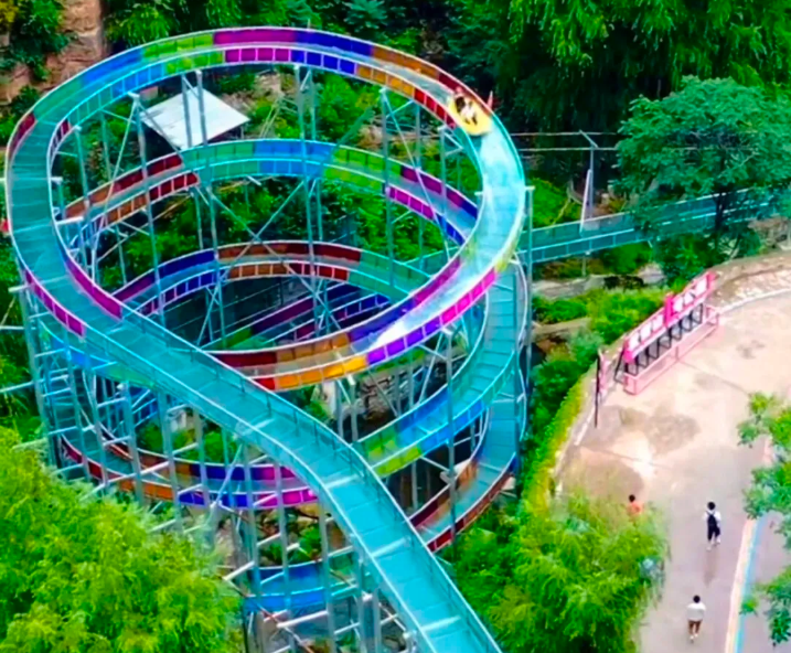 爱情山高山滑道是景区游客热捧的娱乐项目之一,因为它集娱乐、代步、观光、健身为一体的综合性服务设施,游客参与面广,它不仅仅适于青少年游玩,更适于中老年群体的健身和娱乐,更是户外拓展运动最受欢迎的项目,所以目前已成为天河山风景区内理想的娱乐性打卡服务设施。