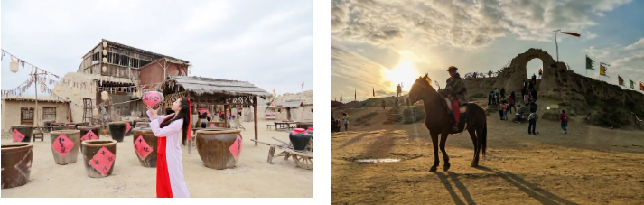 游览【镇北堡影视城】(游览时间约2小时)被誉为“东方好莱坞”的中国电影拍摄基地之一的,迄今为止在这里已拍摄了《高梁》、《黄河谣》、《新龙门客栈》等两百多部经典影视作品,享有“中国电影从这里走向世界”的美称。镇北堡西部影城内保留和复原了许多影片拍摄后的原景和道具供游人观赏。