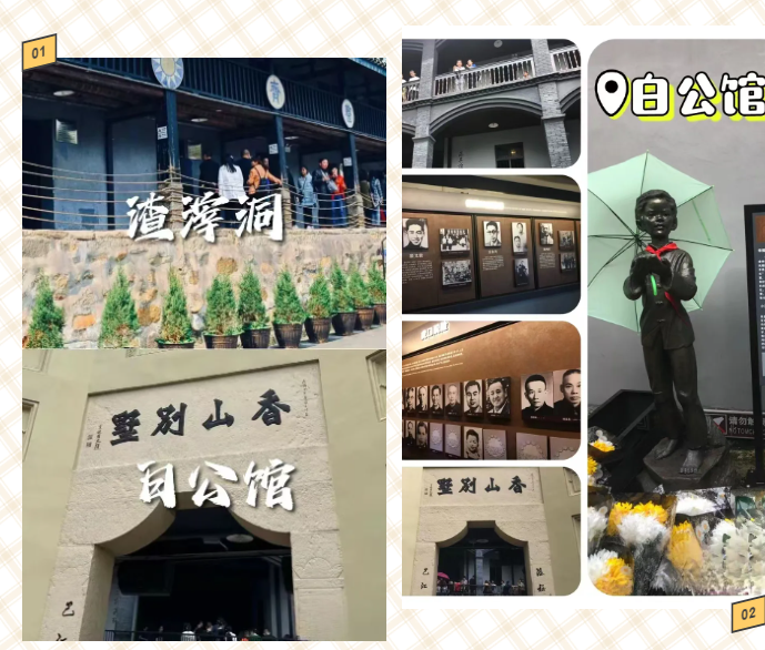随后参观【渣滓洞】(不含中转车20/人、费用自理)1943年国民党军统特务看中其独特地势,占据渣滓洞煤窑,设立看守所,关押在此的有“六一”大逮捕案、“小民革”案、“挺进报”案、上下川东三次武装起义失败后被捕的革命者,如江竹筠、许建业、何雪松等,而后前往红色革命景点【白公馆】观革命传统教育基地中美合作所了解震惊中外的“11、27”大屠杀事件,缅怀革命先辈(如因政策性闭馆或因排队时间过长等待,敬请谅解!不含馆内讲解)。而后前往【周君记火锅博物馆】欣赏重庆美食第一大名片。车览【李子坝轻轨穿楼】,当山水之城碰上了坚韧的重庆人,“上天入地”竟有了实现的可能:“跨江的索道、攀山的扶梯、穿楼的轻轨”,城市的交通穿梭在8D都市的每一处。 而“轻轨穿楼”,凭借其独特的视觉体验,吸引一众游客前来打卡,成为了来渝旅行的网红景点之
