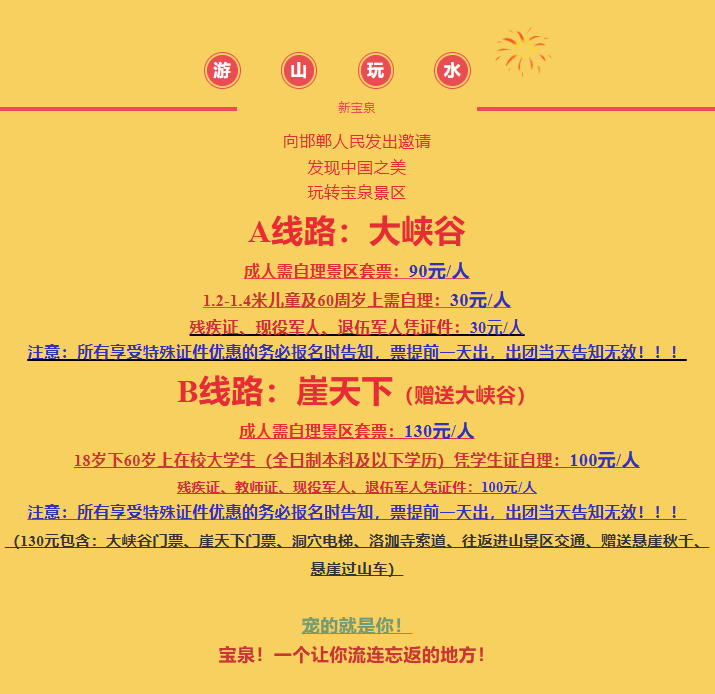注意:所有享受特殊证件优惠的务必报名时告知,票提前一天出,出团当天告知无效!!!