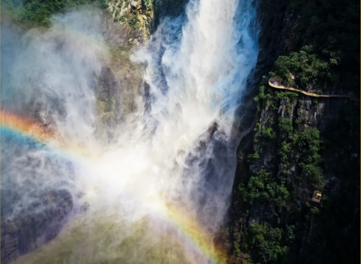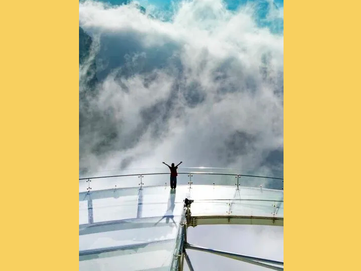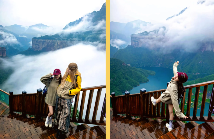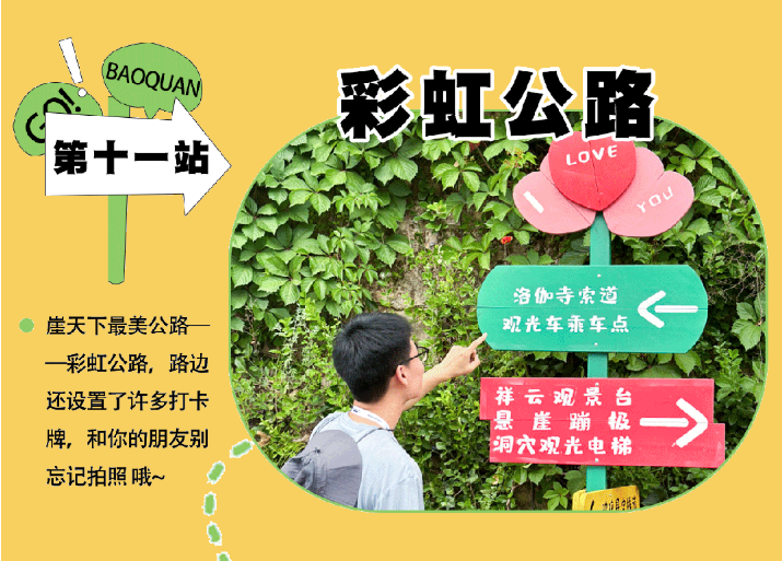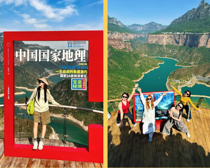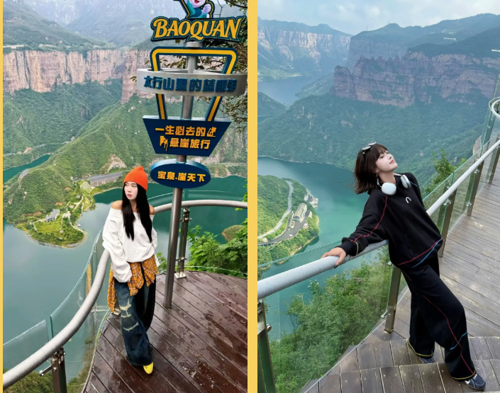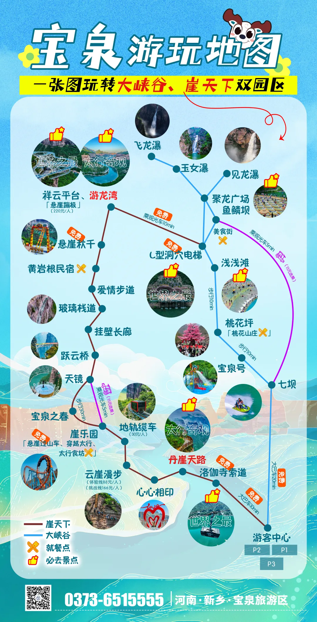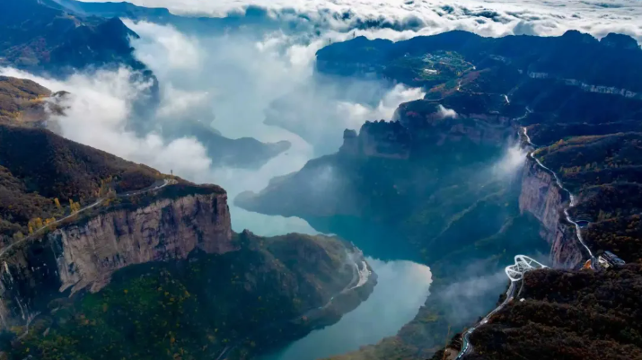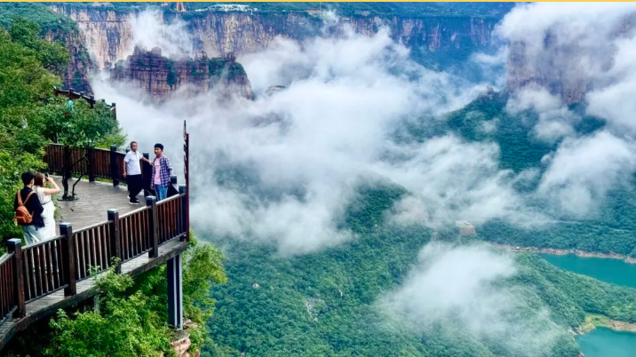 乘观光车到达文化氛围浓厚的“七贤台”拍照打卡,后前往吉尼斯世界记录官方认证的“世界上最大玻璃底观景平台”【祥云观景平台】,整体形态就像一片漂浮的七彩祥云,环绕在山间,此处涵盖了悬崖蹦极、悬崖漫步、玻璃空中滑道和步步惊心等多种体验项目(客人可根据自身身体情况自愿选择),后可免费体验【悬崖秋千】单次搭载32人的装置,瞬间把人送达百米之外,体验过山车般的失重体验,后沿步道继续前行,到达“悬崖玻璃栈道”,走过玻璃栈道体验它的有惊无险。穿过“挂壁公路” 到达“彩虹桥”经过彩虹桥后,又到一网红打卡地“天空之镜”拍照打卡,拾级而上,我们到达了中心服务区——【崖乐园】,主要包含有无动力攀爬、郁金香儿童乐园、星空营地、穿越太行、可免费体验山顶【悬崖过山车】真正享受崖上的尖叫与刺激。可在太行食坊用餐,后沿悬崖线的轮廓铺设三公里游览步道【丹崖天路】欣赏太行山中的蓝眼泪宝泉游龙湾大峡,谷湖光山色,抵达索道站乘坐“世界最大单体单层吊箱往复式索道”——【洛伽寺索道】(投资近3亿元,采用国际先进、国内一流的可承载200人的往复式吊厢,运行速度 10 米/秒,是目前国内承载量和运量最大的往复式“空中客车”,可谓是宝泉三个吉尼斯纪录之一)下山。