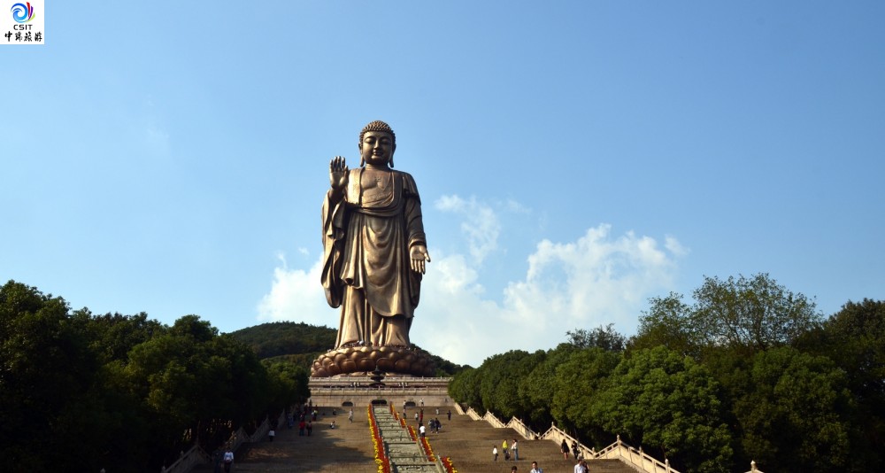 早餐后参观中国五方五大佛之一【灵山大佛】(游玩时间约150分钟):整个大佛通高88米,其中佛体高79米,大佛的每个手指的直径就有1米;观大型动态音乐群雕——九龙灌浴、抱佛脚、佛足坛、阿育王柱、五印坛城以及第二届世界佛教论坛举办地—【灵山梵宫】;赠送价值50元/人的佛文化演出【吉祥颂】(免票人群不享受此政策)。