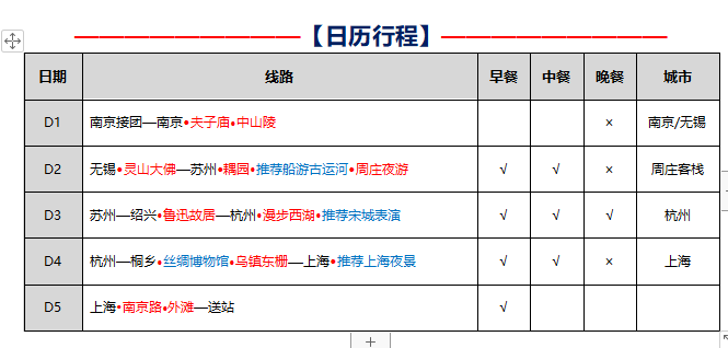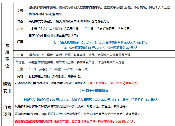 两大水乡:一次游遍江南两大王牌水乡【周庄】、【乌镇东栅】,深度体验江南水乡文化; 禅意江南:世界佛教大会举办地【灵山大佛】观大型音乐盛典九龙灌浴,赏吉祥颂表演; 名人故居:品味鲁迅笔下风情,感受鲁迅当年生活情境的真实场所; 苏州园林:游耦园住佳偶,城曲筑诗城,赏苏州园林的雅致、精巧; 美食享受:全程正餐餐标30元/人,特别安排升级杭州龙井御茶宴,让您的旅行更有味道; 贴心安排:全程只安排1个丝绸博物馆,让更多的时间去旅行; 舒适住宿:全程入住网评3钻舒适酒店+一晚水乡周庄古镇客栈,让您拥有每一个舒适的睡