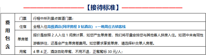 3、旅游旺季或者其他一些特殊情况下,为了保证您的行程游览不受影响,行程的出发时间可能会提早(具体出发时间以导游通知为准),导致您不能正常享用酒店早餐。我们建议您跟酒店协调打包早餐或者自备早餐,敬请谅解;