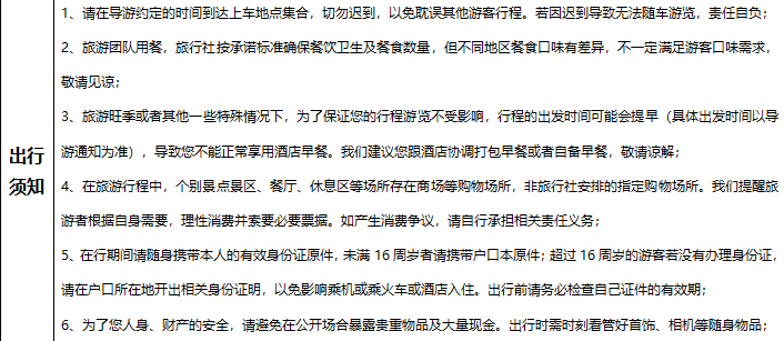 1、因散客拼团,每批游客的火车/航班抵达时间不同,抵达后需要等候,请提前同游客做好解释工作,等待时间不超过2小时(如不愿等待的,我们可以提供有偿的接站服务:250元/趟-小轿车);