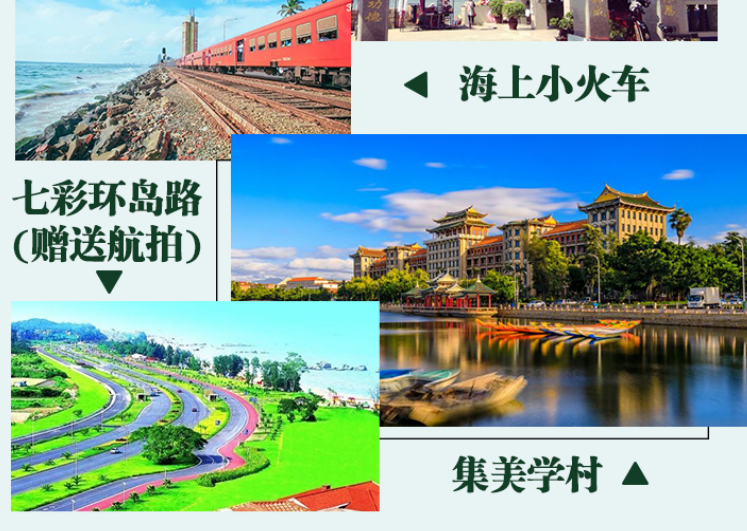 今日景点安排:七彩环岛路(赠送航拍)+曾厝垵+海上小火车+集美学村
