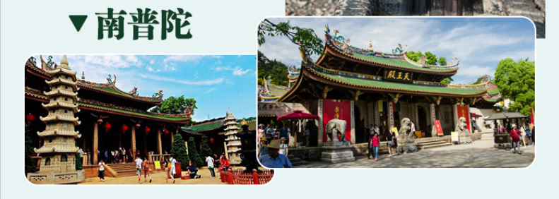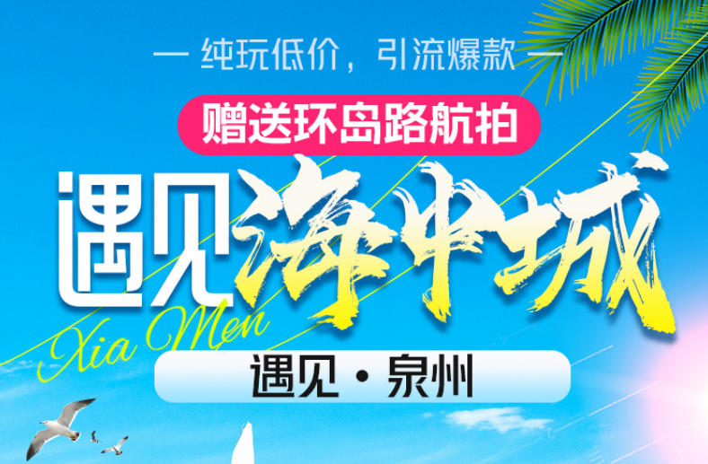 行程特色: 【0购物】全程不进店,时间充裕,无强制消费。 【最特惠】此款为特惠促销产品,特惠的价格和优质的服务并存。 【团餐升级】常规团餐升级成闽南风味餐食,升级为【海鲜大咖】 【产品升级】增加环岛路航拍,送航拍视频,燃爆您的朋友圈。 【行程升级】增加“千与千寻”同款:海上小火车,增加老院子或灵玲动物园(二选一)。 【景点丰富】南普陀寺、鼓浪屿、环岛路、曾厝垵、集美学村、经典景点一网打尽。 【贴心服务】24h微信管家,随时关注您的行程,协助解决您的困扰,让行程更具温度。