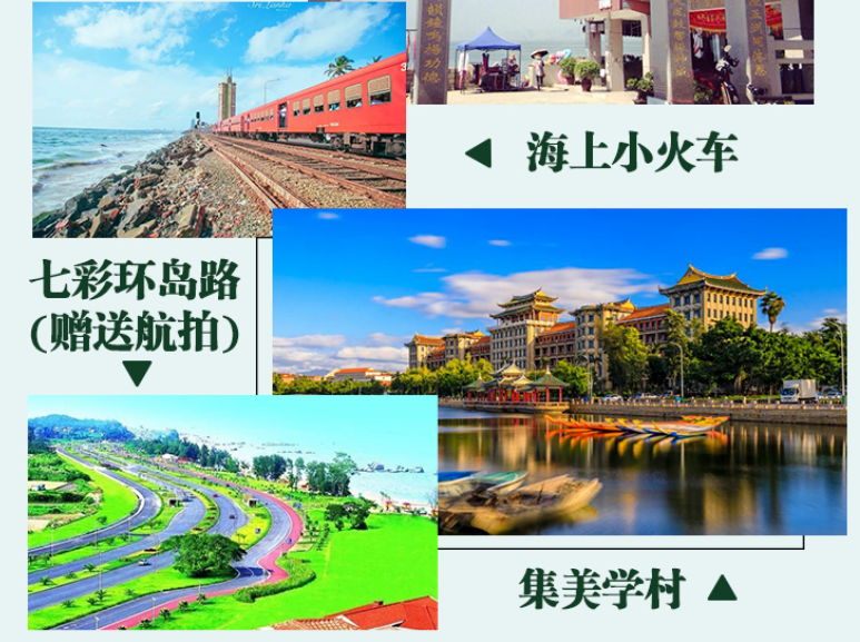 今日景点安排:七彩环岛路(赠送航拍)+曾厝垵+海上小火车+集美学村
