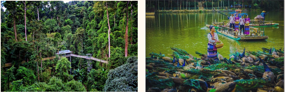 早餐后,乘车前往动车站,乘坐动车直达版纳【野象谷】是今日唯一的景区,不紧不慢地游 逛吧。亚洲象聚集地,象群出没,可一饱眼福。大象也像稚子,画一幅版纳山水,玩一场足球 ,【大象 表演】供您欣赏;还可以不止于观看 ,【喂大象】只需要一根甘蔗、一根香蕉,说不定还会逗得它往您脸 上吧唧一口呢,不过可不像情人之间的温柔,有点疼,想亲要慎重。(不含观光缆车 70/人) 回景洪后,天气太热,推荐找家甜品店,好好尝尝版纳各种水果甜品饮料,很是酸爽,晚间去逛夜市, 宛若置身东南亚。