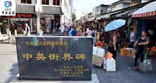前往【沙头⻆中英街】因到特区的⼈要到深圳市公安局办理⼀张“前往边防禁区特许通⾏证才能进⼊“中英街”, 故“中英街”被称作特区中的"特区"。1898 年刻⽴的“光绪帝 24 年中英地界第的界碑⽴于街中⼼,将沙头⻆⼀分为⼆,东侧为华界沙头⻆,西侧为英(港)界沙头⻆,故名"中英街”。⾄今仍为⼀国两制“分界线的标志。中英街位于深 市盐⽥区沙头⻆镇,由梧桐⼭流向⼤鹏湾的⼩河河床淤积成原名“鹭鹚径”。1898 年刻⽴的“光绪帝 24 年中英 地界第 x 号”的界碑⽴于街中⼼,将沙头⻆⼀分为⼆,东侧为华界沙头⻆,西侧为英(港)界沙头⻆,故名“中英街”。⻓不⾜ 0.5 公⾥,宽不够 7 ⽶,街⼼以“界碑⽯”为界,街边商店林⽴,有来⾃五⼤洲的产品,品种⼗分⻬全。