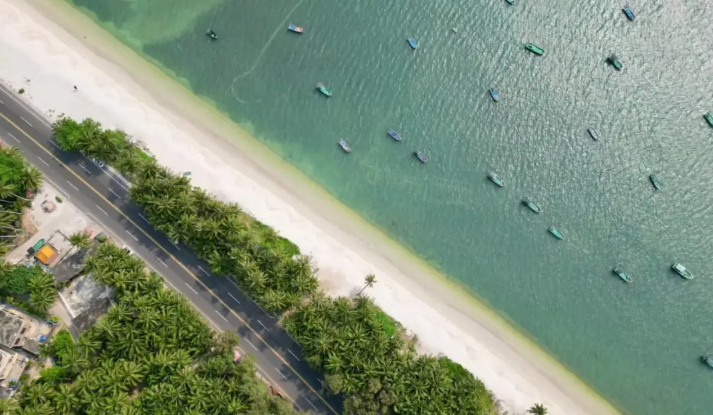 乘船游览载⼊世界吉尼斯纪录的分隔河、海最狭⻓的沙滩半岛【⽟带滩】(往返船票 90元/人⾃理)⽟带滩位于海南博鳌,全⻓ 8.5 公⾥,地形地酷似澳⼤利亚的⻩⾦海岸和墨西哥的坎昆,在亚洲区可谓仅此独有。