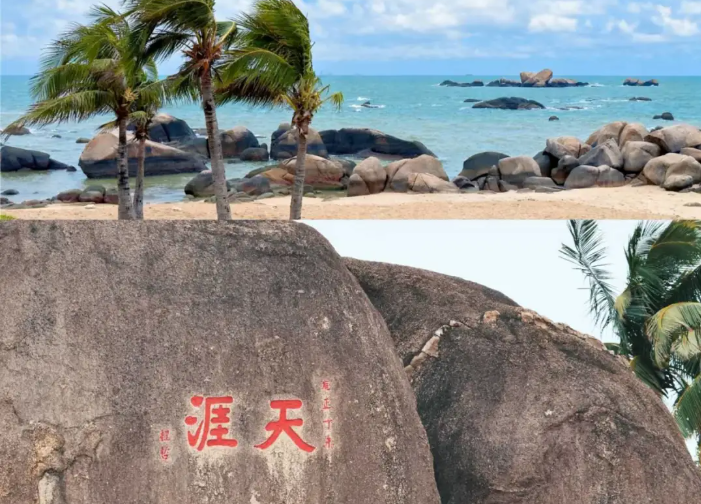 【天涯海⻆】因景区两块巨⽯分别刻有“天涯”、“海⻆”及郭沫若先⽣题写的(天涯海⻆游览区)⽽得名