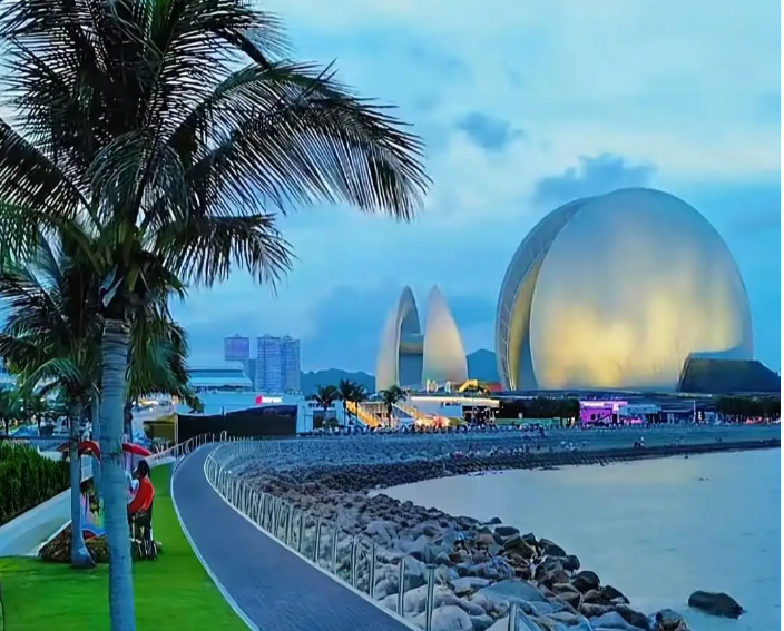 早餐后,游览珠海新地标―【野狸岛 - ⽇⽉⻉】,珠海⼤剧院是中国唯⼀建在海岛上的歌剧院,在⼀望⽆际的蓝⾊海⾯上与郁郁葱葱的 野狸岛交相辉映,可以创造出歌剧院建筑⽆⽐崇⾼的艺术魅⼒。这⾥不仅有珠海⼤剧院,还 可供⼤家餐饮娱乐购物的⼤型商业综合体“海韵城”等。