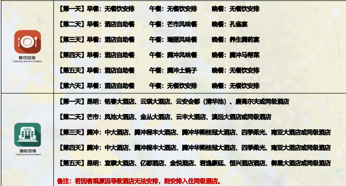 2、用餐标准:5 早餐/7 正餐(正餐餐标 30 元/人);早餐均为酒店自助餐