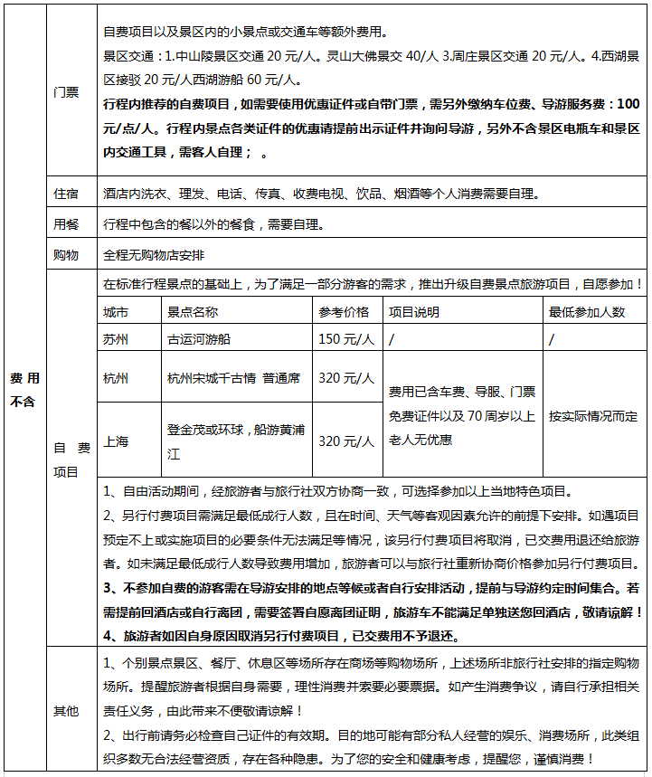 【温馨提示】:因自费项目包含司机车费、导游服务费,如需自行购票,需要补交100元/人相关费用,也可自行前往,请谅解!