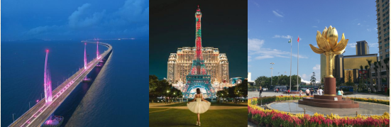 港珠澳大桥(约1小时 ,中途不可下车不可站立): 换乘“金巴 ”先后途经东西人工岛、海底隧道、风帆塔中国结塔、海豚塔等标志地点 ,一路见证天堑变通途的世界奇迹。金巴为过桥指定交通用车 ,非旅游包车。