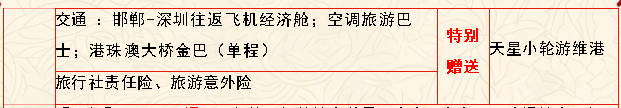 特别说明: 1、此行程为参考行程,交通情况以及淡旺季有所调整,以最终出团行程为准, 在不减少景点的前提下,本社保留调整行程顺序的权力;行程中请服从领队和导 游安排,如有问题,可向领队和导游提出;如遇地震台风瘟疫罢工交通延误等不 可抗力,导致行程延误,变更,取消等情况,变更后所产生的费用损失由客人承 担(原行程中的所有费用不予清退)。 2、贵重物品(如现金、通行证、有效证件、珠宝首饰等)请务必随身携带,自行妥善保管,若丢失,领队可在不影响行程正常进行情况下协助处理,不承担任 何责任问题。 3、若团队中出现单男单女,一律以加床或拆分夫妻等方式解决,领队有权利根 据情况调整安排。 4、因近期澳门关口查的很严需告知:客人境外买的商品拆开包装过关, 以免造 成不必要的税金损失。 5、我社以客人所签意见书为准,如有意见请在意见书上注明,并对所签意见书 负责,或可当时联系我社负责人反映问题,以便我社及时解决,若团队返程后再 提出任何意见,我社有权拒绝处理。 6、出发前请确认本人香港澳门两地签注是否都有,并在有效期内。如因本人无 法进港或进澳,需由本人承担所有损失。 7、因不可抗力等因素造成的团体滞留,由此所产生的费用由本人自理。祝您旅 途愉快!