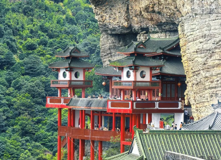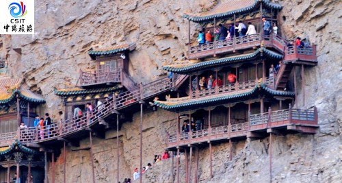 ④远观【4A悬空寺】(游览1.5小时)位于浑源县恒山金龙峡西侧翠屏峰峭壁间,原叫“玄空阁”,“玄”取自于中 国道教教理,“空”则来源于佛教的教理,后改名为“悬空寺”。