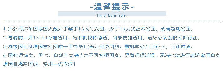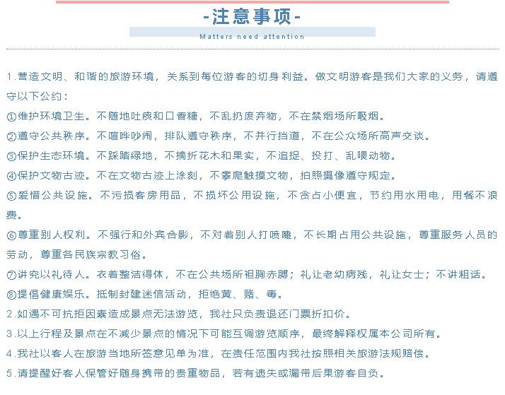 ※※※※以上行程在不减少景点的情况下,旅行社有权调整景点游览先后顺序※※※※
