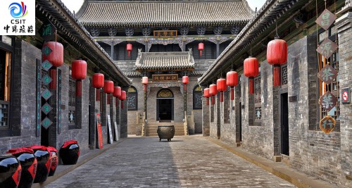 ③后游览【5A乔家大院】(游览约2.5小时)始建于1756年,整个院落呈双“喜”字形,分为6个大院,内套20个小院,313间房屋,建筑面积4175平方米,三面临街,四周是高达10余米的全封闭青砖墙,大门为城门式洞式,是一座具有北方传统民居建筑风格的古宅。