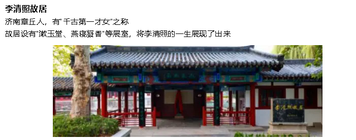 可自行打卡【趵突泉】(门票需自行线上预约购买)趵突泉三窟并发,声如隐雷,“泉源上奋,水涌若轮”。泉水一年四季恒定在摄氏18℃左右。严冬,水面上水气袅袅,像一层薄薄的烟雾,一边是泉池幽深波光粼粼;一边是楼阁彩绘,雕梁画栋,构成了一幅奇妙的人间仙境。【宽厚里】,在宽厚里闲逛,看看店铺里的奇珍异品,古色古香的建筑,别有韵味的茶楼,古老的大院和历史的场景穿插到现代的生活之。【解放阁】济南市的著名景点,隔护城河与黑虎泉相望。【黑虎泉】是天下第一泉5A级风景区的三大泉群之一。【超然楼】始建于元代,楼名效仿苏轼所建、苏辙命名的超然台,取离尘脱俗,不受拘束之意。【芙蓉街】是一条具有特色的老街以及小吃街。芙蓉街是一条南北走向的步行街,因街上有名泉---芙蓉泉而得名。