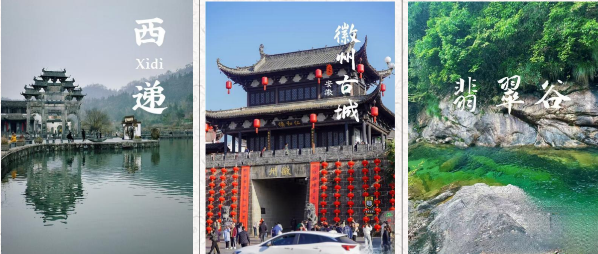 5A級:黄山+宏村+西递+徽州古城+唐模棠樾牌坊群+屯溪老街+婺源篁岭+千岛湖4A级:齐云山十花山谜窟+翡翠谷十九龙瀑大牌景点:全程 9 个 5A+6 个 4A 景点首道大门票价值 1180 元全免! 尝鲜美食:全程含 7 早 7 正餐(酒店精品豪华中西式自助早,正餐包含 篁岭中餐) 升级其中 4 个特色餐:徽州臭鳜鱼宴会+徽州养生霸王宴+徽 州迎客喜宴+徽州秋收宴 +赠送一个徽州黄梅戏表演! 精品住宿:全程入住豪华酒店。 独家体验:✬穿着汉服穿越徽州古城,深度体验古徽州文化。 ✬微电影拍摄,穿越清明上河