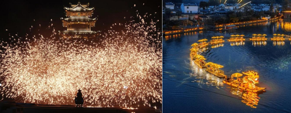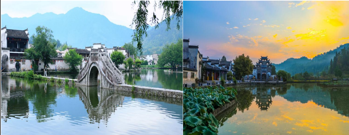 早餐后,大巴车赴【西递】(门票赠送)素有“桃花源里人家”之称,至今 仍留有明清民居 300 余幢、街巷布局依旧,风貌古朴,建筑古老,被国内外建筑专家 赞誉为“世界上保存最完整的古民居建筑”,著名景点有:跑马楼、胡文光牌坊 (胶州刺史坊)、桃李园和西园、天井和绣楼、大夫第等。被世人称为明、清古 建博物馆,是“徽州经典”。是一处以宗族血缘关系为纽带,胡姓聚族而居的古 村落。2000 年被联合国教科文组织列入世界文化遗产名录。车赴游览“画里的乡 村”、影片《卧虎藏龙》外景拍摄地。 后前往【宏村】(门票赠送)是古黟桃花源里一座奇特的牛形古村落,背倚 黄山余脉羊栈岭、雷岗山等,地势较高,有时云蒸霞蔚,如浓墨重彩,有时似泼 墨写意,四周山色与粉墙青瓦倒映湖中,好似一幅徐徐展开的山水画卷,吸引了 众多爱好写生、摄影者及影视作品纷至沓来。宏村整个村落占地 30 公顷全村现 完好保存明清民居 140 余幢,承志堂“三雕”精湛,富丽堂皇,被誉 为“民间 故宫”。村中数百幢古民居鳞次栉比,其间的“承志堂”是黟县保护完美的古民 居,其正厅横梁、斗拱、花门、窗棂上的木刻,工艺精细、层次繁复、人物众多, 人不同面,面不同神,堪称徽派“四雕”艺术中的木雕精品。到此参观的国内外 游客,无不为之倾倒。 车赴【齐云山】(门票赠送,索道自理)中国四大道教圣地之一,国家森林 公园,地质公园,以道教文化和丹霞地貌为特色。与黄山、九华山并称为皖南三 大名山。共分月华街、云岩湖、楼上楼三个景区。主要景点:寿字崖,象鼻岩, 洞天福地、真仙洞府,书法真迹,月华街、玄天太素宫、香炉峰、小壶天,云岩 湖等。清乾隆皇帝赞誉为“天下无双胜境,江南第一名山”。当夜幕降临,山脚 下的【齐云小镇】(赠送游览)化身为非遗不夜城,各种传统表演轮番上演—— 横江舞金龙穿梭而来,非遗鱼灯人群中漫游,打铁花溅起漫天星辰,七彩烟花美出天际,无人机矩阵绘出流动的徽州画卷。每一场绝技无缝衔接,每一幕都是视 觉盛宴!光影交织,如梦似幻,仿佛穿越千年。