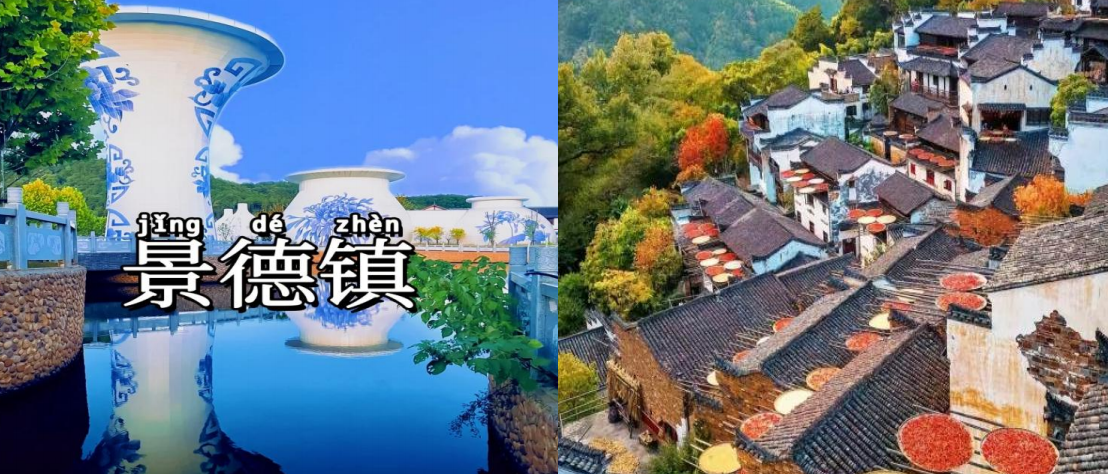 早餐后,前往 3A 景区【景德镇陶瓷中心】(免费参观和讲解约 2 小时)景 德镇陶瓷生产基地观看陶瓷生产工艺:拉胚、彩绘、上釉、烧制等制作流程、欣 赏瓷都精品陶瓷展示、名人名作,参加景德镇陶瓷文化推广宣讲,观看陶瓷产品 精品展示,自由选购精品陶瓷产品。 后前往最美乡村一婺源【篁岭景区】(门票赠送)篁岭浓缩了婺源旅游精华, 被誉为“最美乡村景观”“最美中国符号”景区十大看点有 1.晒秋人家 2.天街 古巷 3.五桂香堂 4.奇异怪屋 5.冒险森林 6.极速溜索 7.红豆杉群 8.垒心栈桥 9.梯田花海 10.爱在心田。这里一定是你不容错过的婺源代表性美景,参观天街 似玉带将经典古建串接,徽式商铺林立,前店后坊,仿佛一幅流动的缩写版“清 明上河图”。乘上高空索道,俯瞰独特的晒秋奇观。