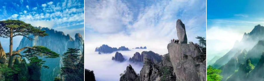 后前往【黄山风景区】换乘中心,(门票根据年龄自理,如遇景区优惠活动按景区政策执行)换乘景交上山车程约 30 分钟(景交自理 38 元人),到达慈光阁水厂售票处,乘坐缆车(自费 90 元/人,缆车上山 15 分钟左右) 上山玉屏索 道上站 蒲团松,沿途观光道欣赏莲蕊峰、莲花峰、俯瞰玉屏缆车。攀爬好汉坡,抵达玉屏楼景区,在此感受天下迎客 松之奇观,远眺黄山最险峰 天都峰,观赏黄山奇石“松鼠跳天都”“玉屏睡佛”“白象石”等。后沿莲花新道 行至 莲 花峰莲花厅。沿途欣赏奇石鲤鱼跃龙门,孔雀戏莲花等奇石。下百步云梯,后经一线天攀登鳌鱼峰到峰顶,至天海景 区。在此稍微休息调整,集中等。后攀登黄山第二高峰 1860M 光明顶,在此远眺黄山群峰,有“不到光明顶,不见黄 山景”之说法。后经观石厅,远眺红楼梦开篇奇石黄山飞来石,后攀登贡阳峰,抵白鹅岭,步行(约 2 小时)或者乘 坐云谷索道(自费 80 元/人,缆车下山约 15 分钟)下山,后乘环保车到寨西换乘中心,后入住酒店休息