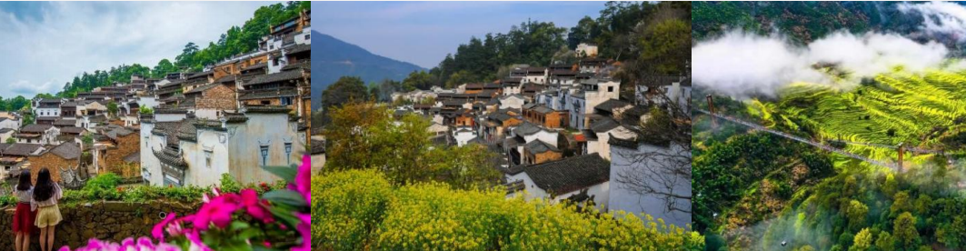 早餐后,前往游览【徽茶文化馆】前往千亩有机生态茶园,在茶园中漫步,体验采摘,感受满眼的绿、扑鼻的香;化身 茶乡采茶人体验采茶之艰辛与快乐,后参观谢裕大茶文化博物馆。了解徽茶文化、茶叶相关知识,学习茶叶冲泡,保存 方法及相关礼仪,一品黄山珍茗,自由选购黄山茗茶等土特产。参观游览【婺源篁岭】(自理缆车 130/人后赠送门票,3.7-4.6 日油菜花节及节假日需自理 165/人) 篁岭是集古村落、古树群、梯田花海、民俗晒秋为一体的最美乡村景致。村庄内 游客可参观【天街】民居围绕水口呈扇形梯状错落排布,U 形村落带您体验南方的“布达拉宫”。徽式商铺林立,前店 后坊,一幅流动的缩写版“清明上河图”。家家户户屋顶晒盘云集,绘就出一幅“晒秋人家”风情画。游览【卧云桥、 垒心桥】索桥似玉带将两岸的梯田串接,体验百米高空玻璃栈道。俯看脚下梯田油菜花,感受未有过的油菜花。在观景 台上你可以拿出相机拍下美景,走进梯田油菜花感受人在花海中的神话【百花谷】欣赏紫色花海薰衣草三角梅、玫瑰、 孔雀草花、紫薇花等美景,近距离欣赏花海世界,形成“窗衔篁岭千叶匾,门聚梯田万亩花”的美景驿道文化为主题打 造,在天然氧吧的田园中享受“乡村慢生活”的惬意。还可以游览【民俗展览馆】、【竹山书院】、【众屋·绣楼】、【五 桂堂】、【怪屋】【怡心堂】、等徽派特色民居。打卡【花溪水街】【绿野仙踪】等知名网红景点,后乘坐索道下山。
