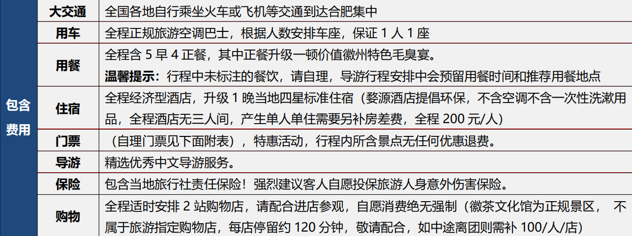 【送站】(敬请安排 17:30 之后班次)结束后,乘车返回合肥,依次适时送往合肥南站--合肥站--合肥机场