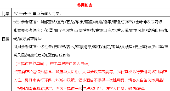 1、少应及时联系导游员或酒店工作人员,切勿大意,减少不必要的纠纷。根据湖南省政府规定,酒店不提供一次性洗漱用品,请客人自备。敬请谅解。