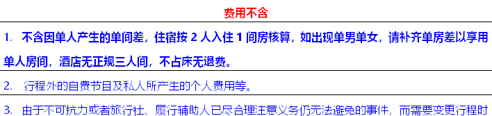 4、散拼团有一定的特殊性,由于客人来的交通不一样,如遇航班、火车晚点,短时间的等待属于正常情况,由于客观原因造成未能赶到正常发班时间的,产生额外费用,客人自行承担。
