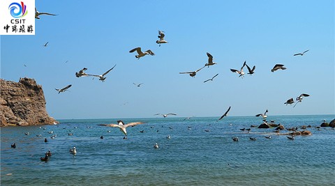 赴网红打卡地【火炬八街】、国际海水浴场自由活动,国际海水浴场是国内最好的海水浴场之一,浴场东临山东大学威海校区,海岸线全长2800余米,沙滩面积30万平方米,沙质柔细,海水清澈,滩坡平缓,可同时容纳10万名游。【布鲁维斯号】沉船,2022年9月巴拿马籍巨型游轮遇台风搁浅,成为一道美丽的风景线,也是威海著名的抖音打卡地。 【海驴岛】或【鸡鸣岛】(门票120元赠送,(必消+综合服务费50)不去不退)乘船环岛游,乘船前往被称为海鸥白鹭王国的,百鸟欢跃,噙石为助。几十万只鸥鹭遮天蔽日的奇观盛况,海驴岛也因此被称为海鸥王国。海驴岛有着原始的、天然秀美的海岛风光,且岛上拥有成片的芙蓉丛、芦苇、野枣树及天然优越的地理条件,使海岛成为鸟类的天堂,且全部属于野生自然状态!海驴岛周围岩石被海浪雕蚀得危峰兀立、怪石嶙峋,与海潮、波涛、鸥鹭共同构成风景独特的海岛风光。