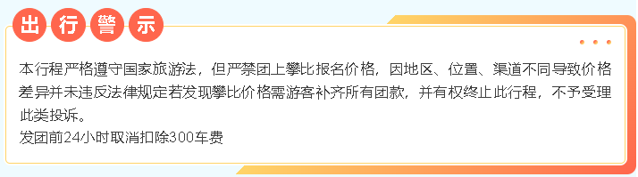 门票: 包含以上所有景点大门票,不去不退费;任何证件不再享受任何优惠,景区内小交通自愿参加。