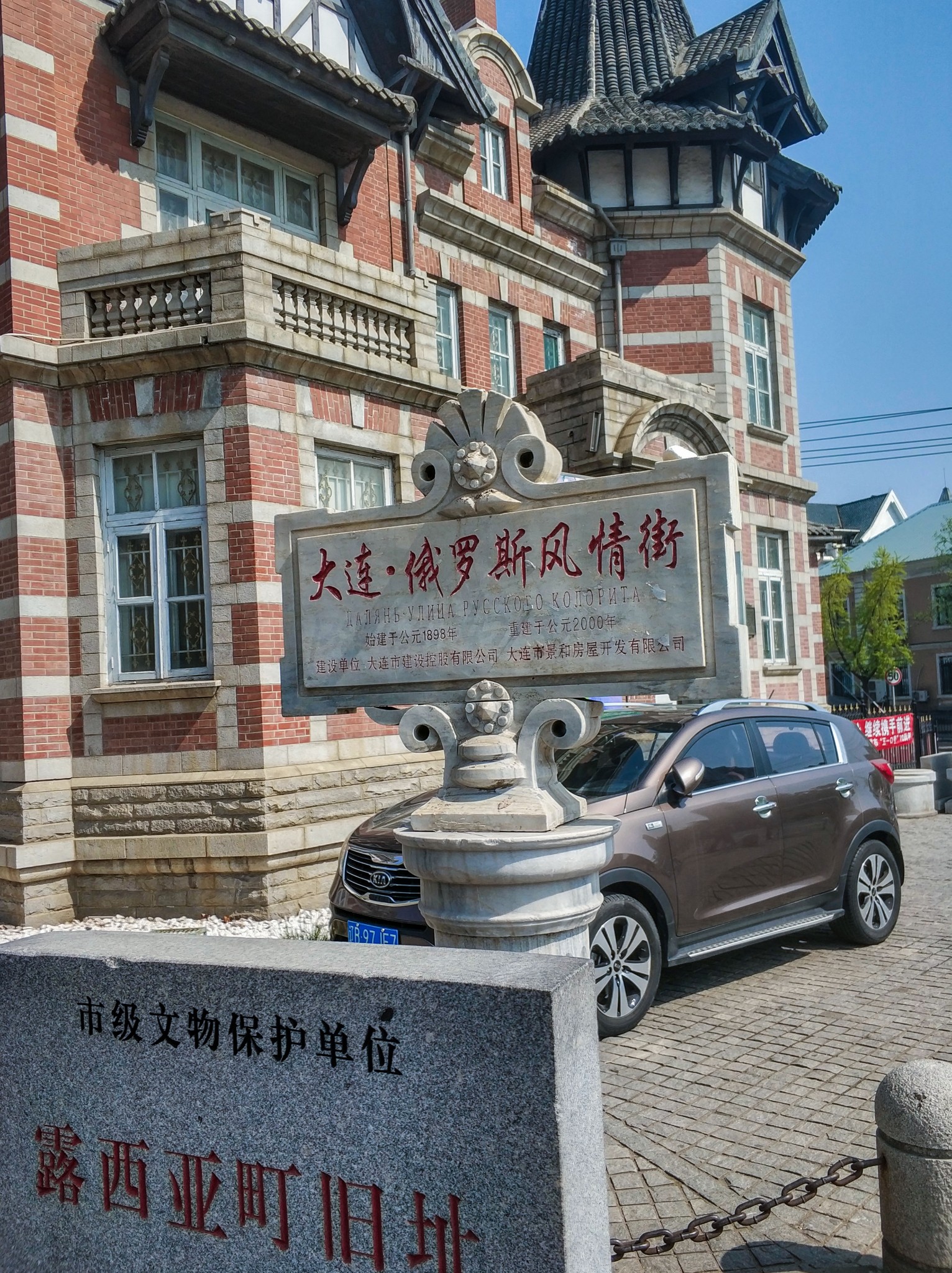 俄罗斯 风情一条街,地处繁华的胜利桥 西北 ,又称为团结街,保留了3栋原远东 白俄罗斯 时的建筑,已有百年历史。是全国第一条具有 俄罗斯 十九、二十世纪风格的 俄罗斯 风情街。 俄罗斯 风情一条街全长500米,总规划面积约50,000平方米。一期工程于2000年3月份动工,9月15日竣工,9月30日交付使用,该街以欧式风格建筑为主,经营 俄罗斯 餐厅,并配备多家旅店、旅游工艺品、纪念品店等,另外还有用蜡像塑造的二、三十年代 白俄罗斯 远东总督等行政官员当时在 大连 地区办公、生产等情景,以及运用俄式风情马车等娱乐设施,开展特色旅游活动。原汁原味的异域格调,使游客省去了出国的鞍马劳顿,到这里即可领略到纯粹的他乡风情。