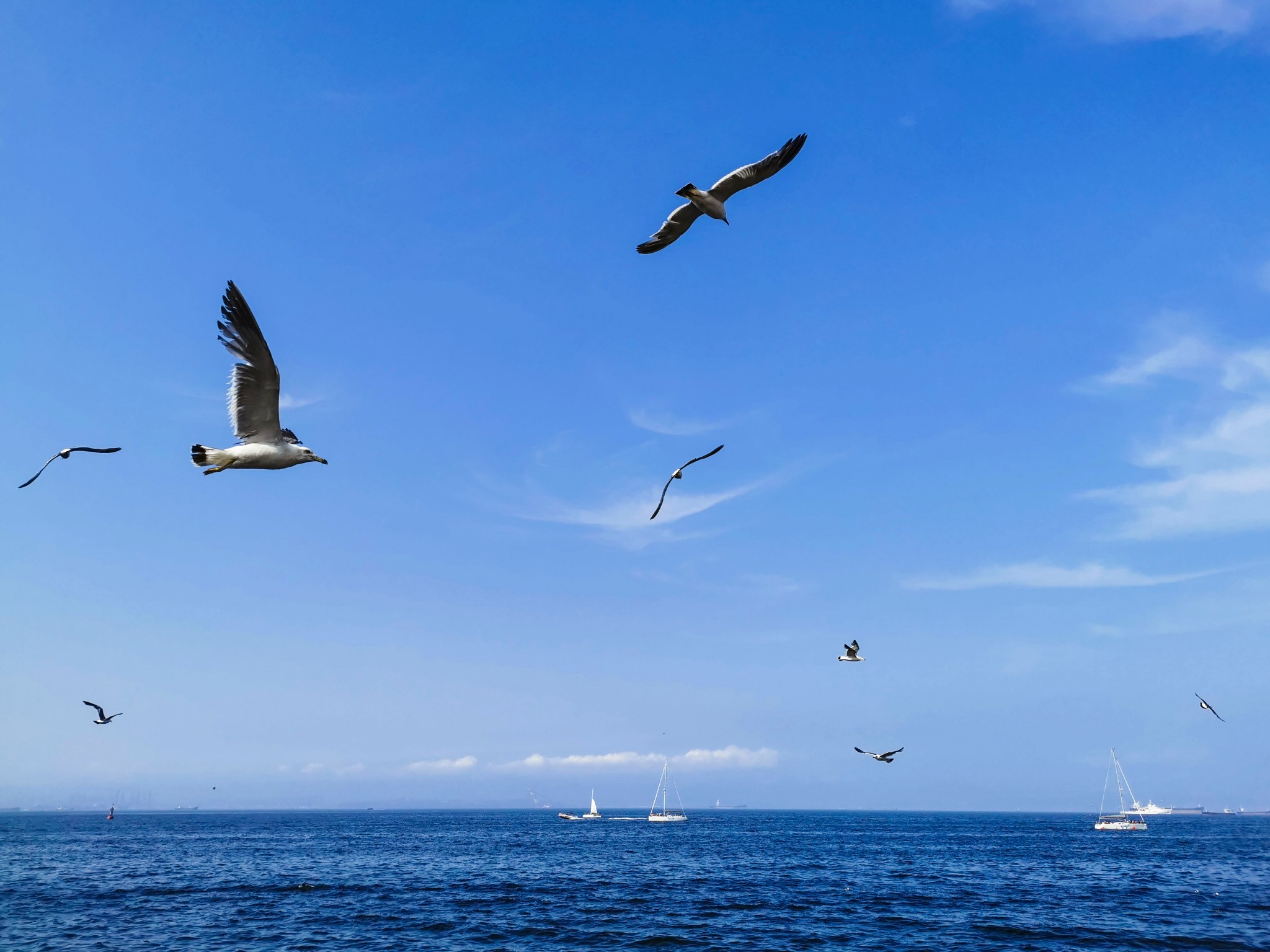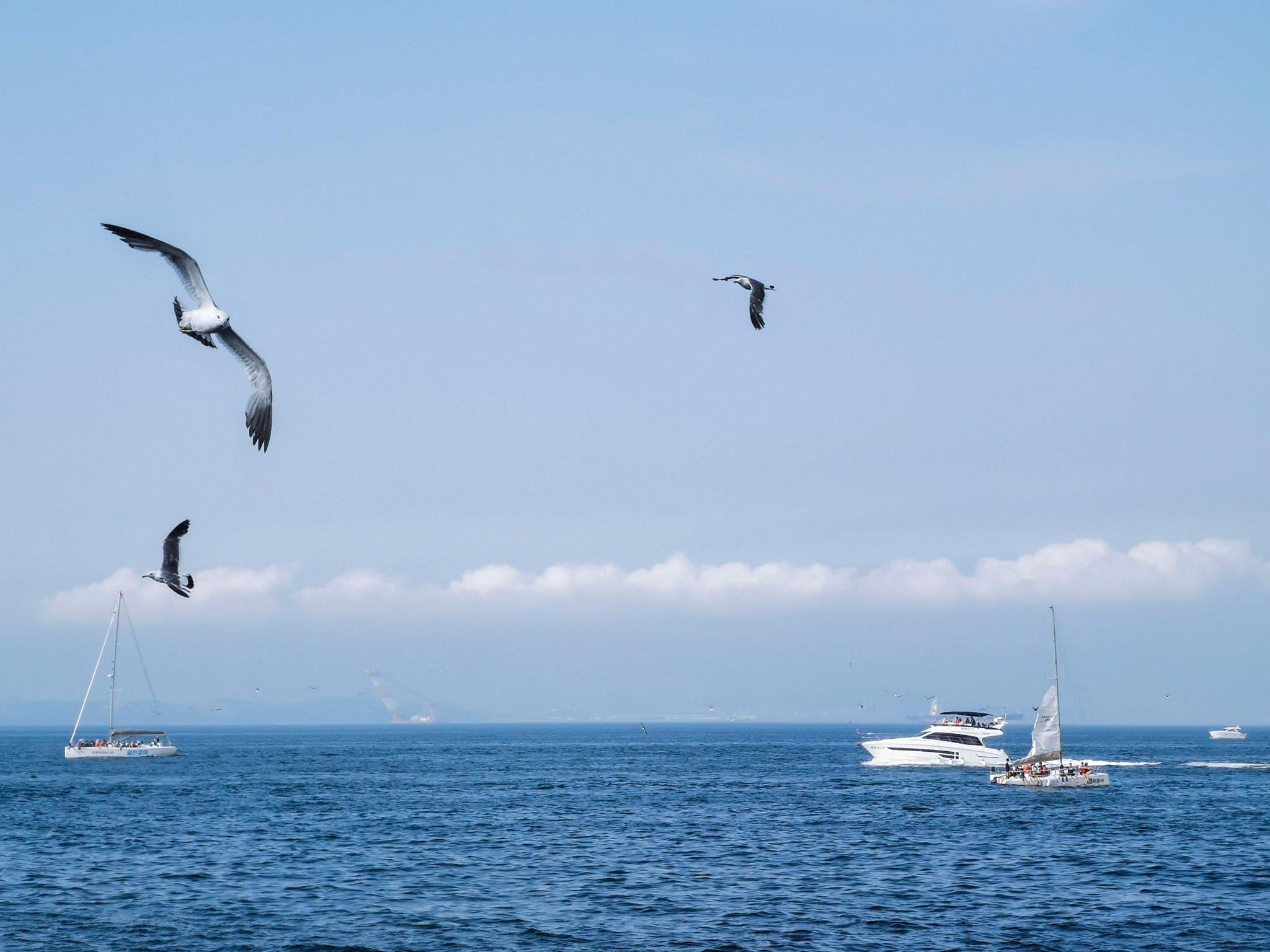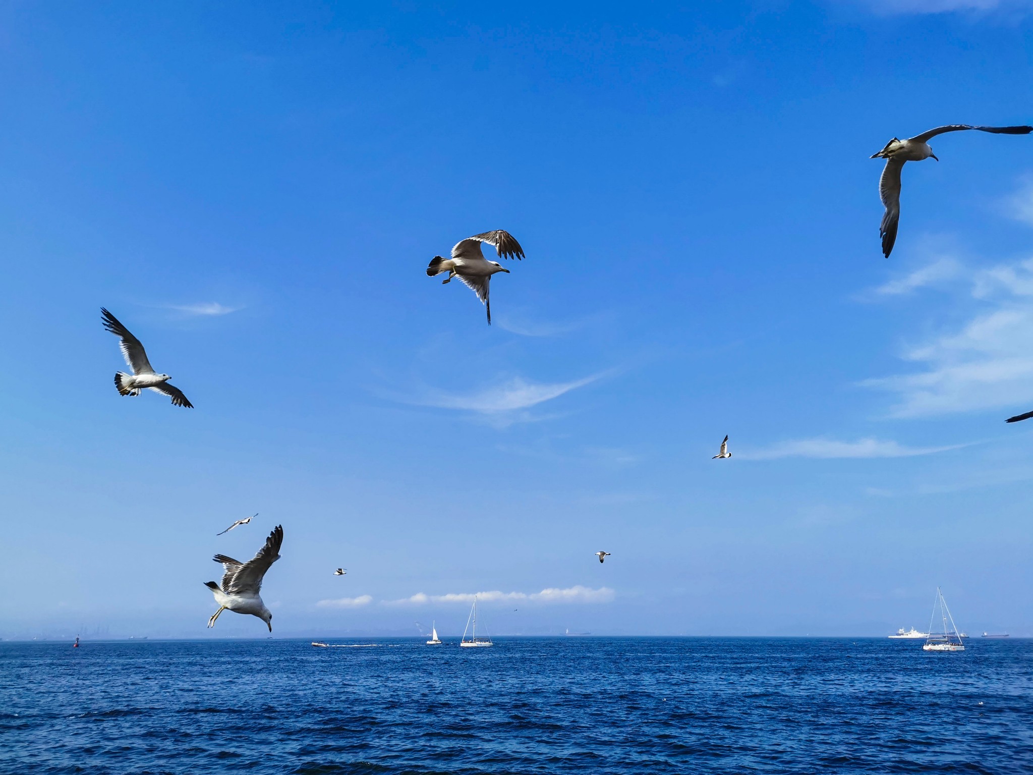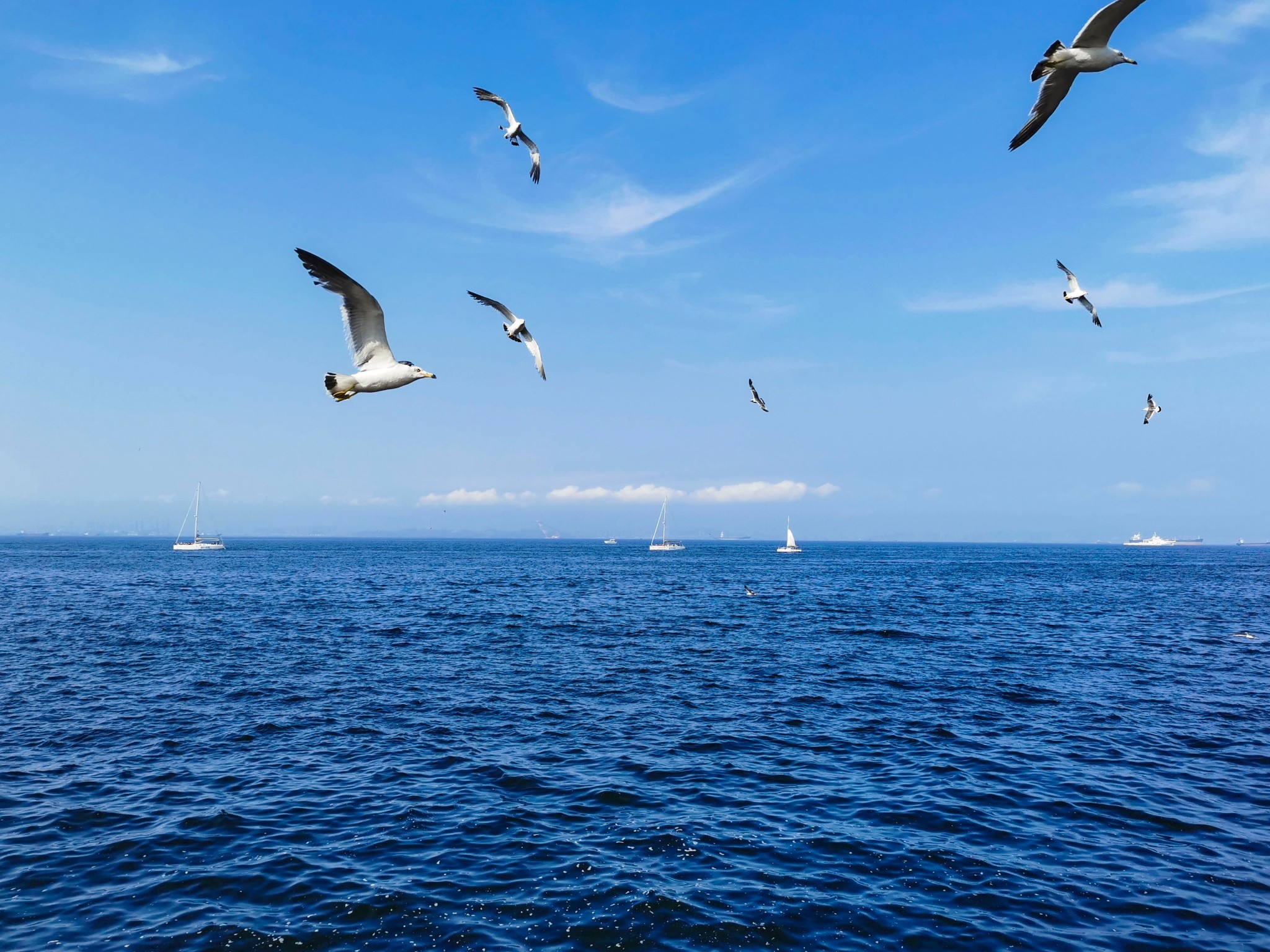 出来后站在二层平台上,可以看看远处的星海湾大桥,看看海鸥。