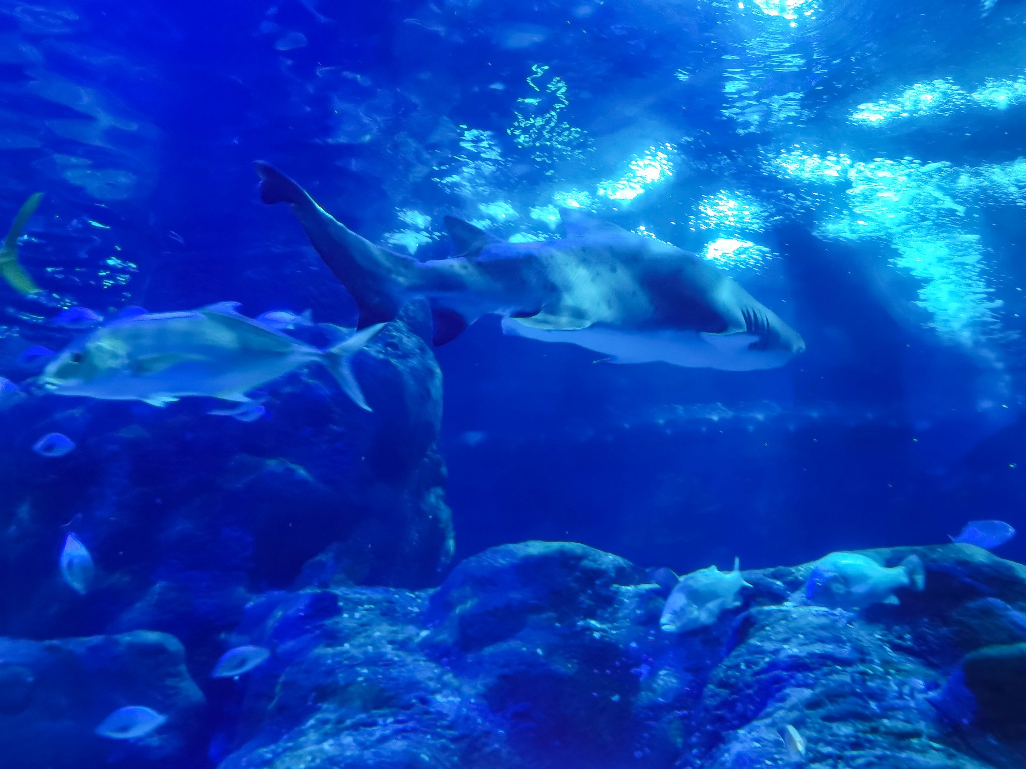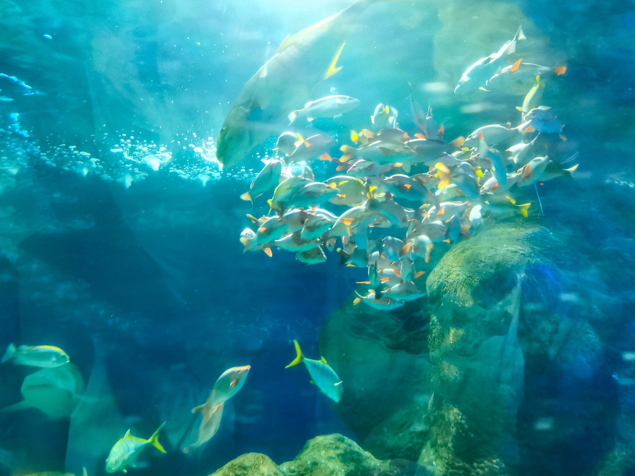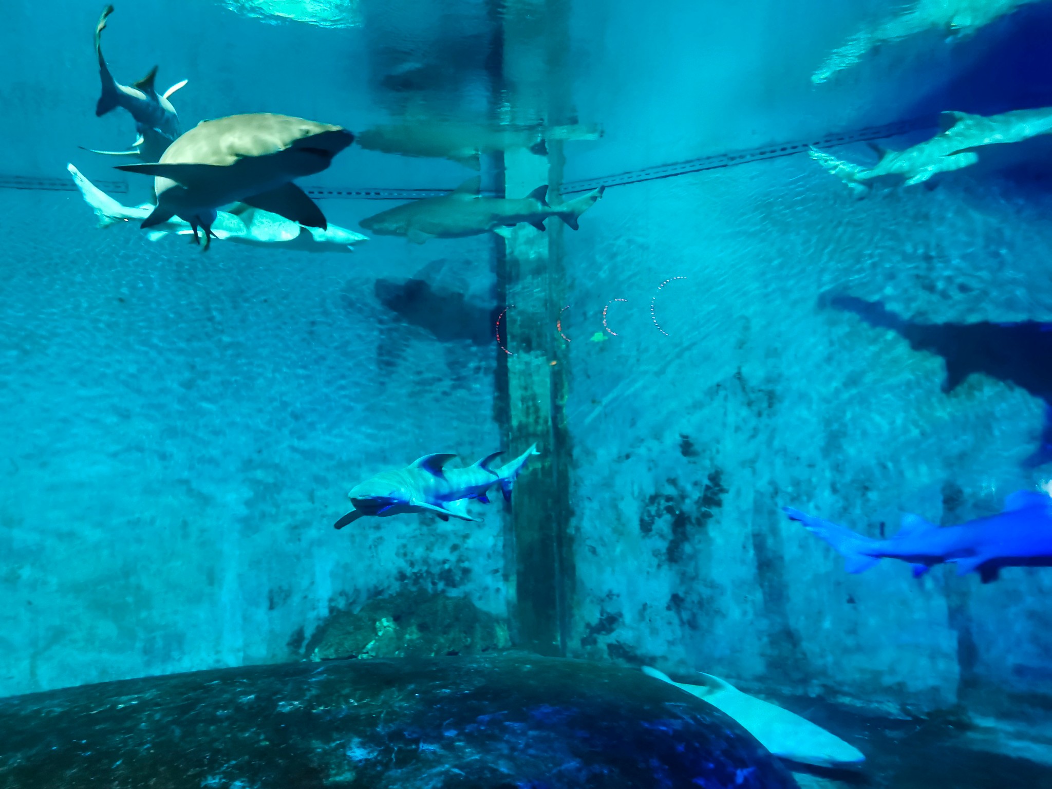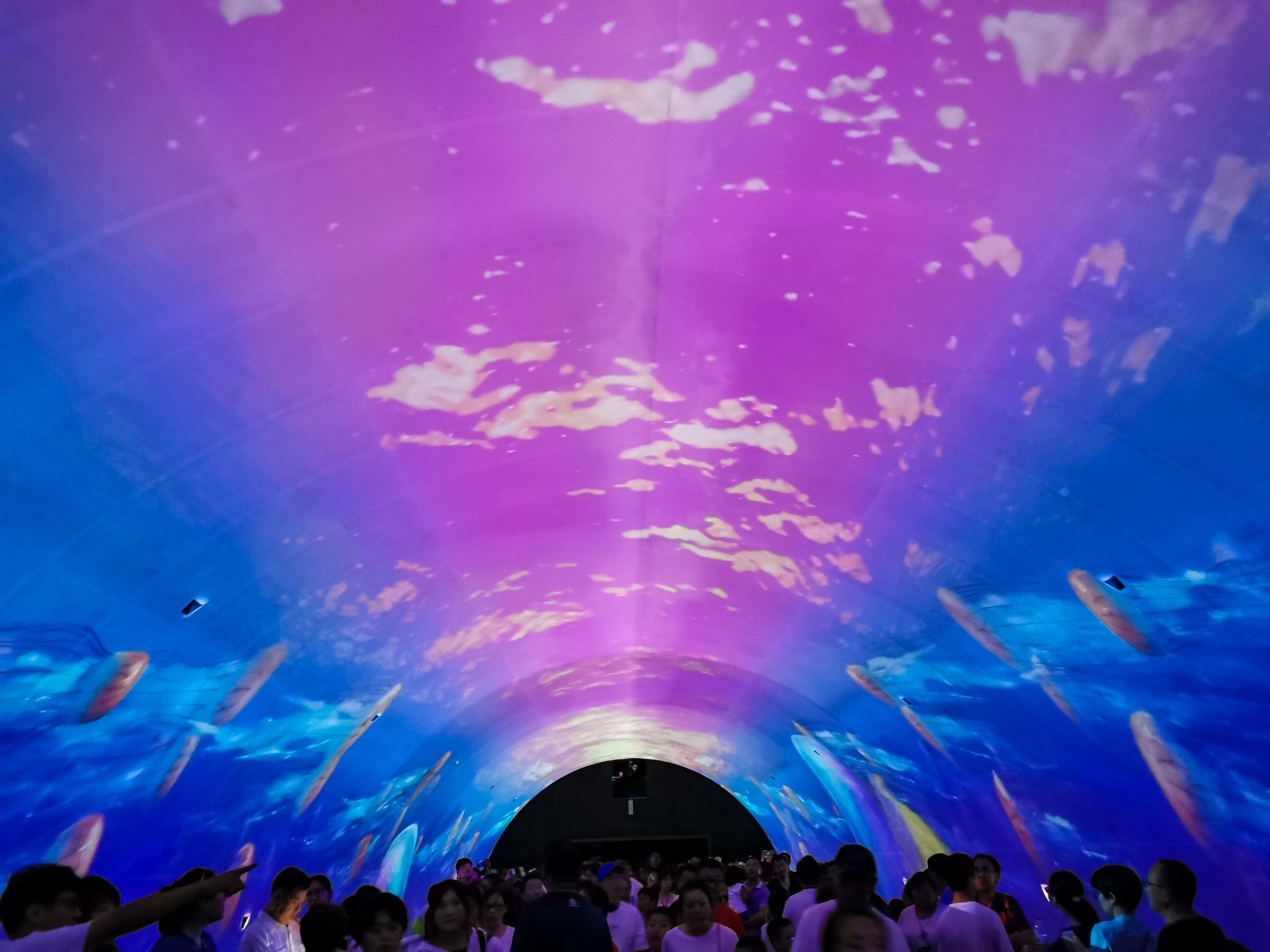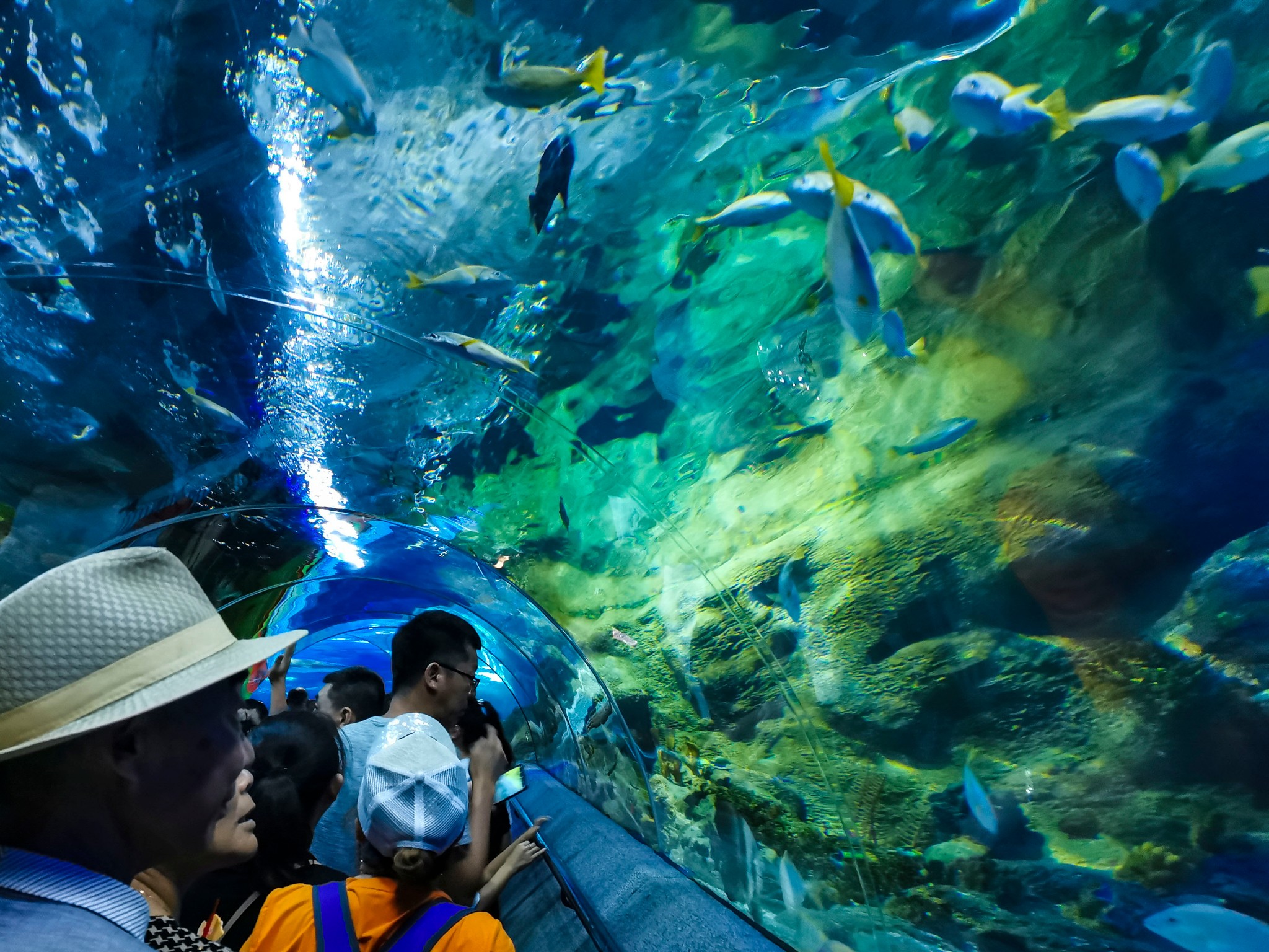 118米海底透明 通道 ,将您带进全景式的海底世界。乘上缓缓前行的海底列车(水平步道),置身于透明的拱形 通道 中,神奇迷离的海底景观将围绕在您的上方和四周。300多种,万余尾世界各地的珍奇鱼种,凶猛威武的鲨鱼、头大无朋的鳐鱼、色彩斑斓的热带鱼,大大小小的鱼群竞相变换队形,向您展示优美奇丽的海底梦幻世界。此行最期待的海底 通道 ,看着鱼从头顶游来游去,非常梦幻,全程不到十分钟,如果不是人太多,还想再走一次。