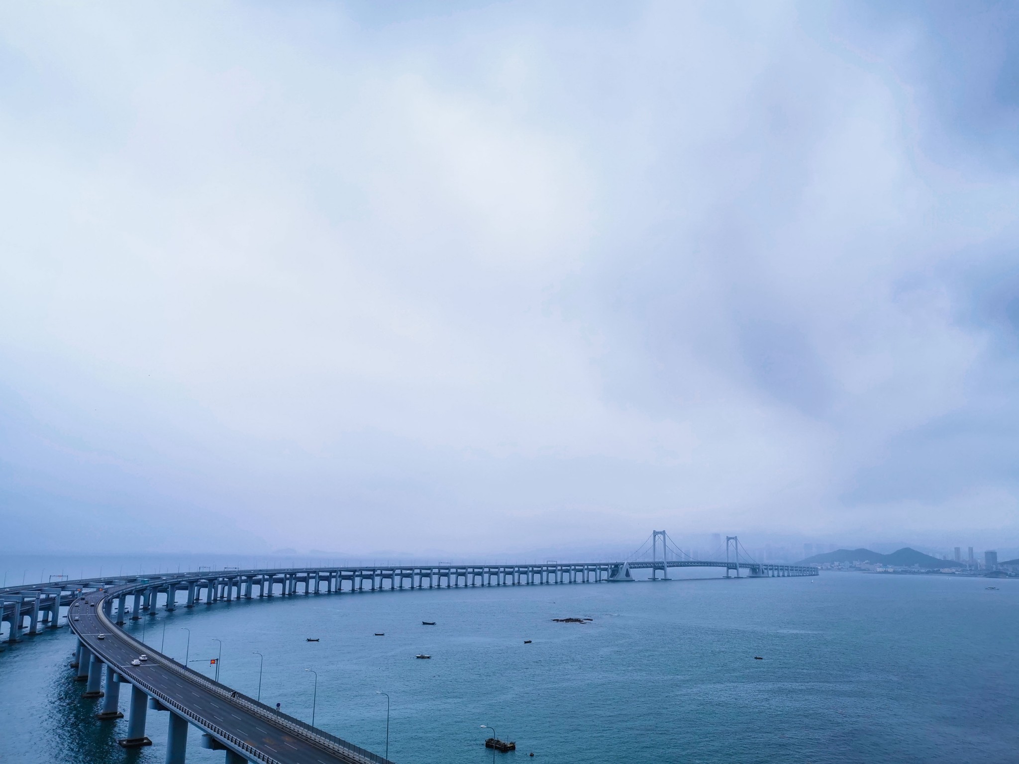 从一 方城 堡站出发,沿着滨海路木栈道走,路上的游人三三两两,此一段最大的看点就是星海湾大桥了。星海湾大桥是 中国 国内首座海上建造锚碇的大跨度双层悬索桥,建成后成为星海湾一个新的旅游景点以及 大连 市新的地标式建筑。星海湾大桥于2011年10月动工兴建,于2015年1月5日完成合龙工程; 于2015年10月30日通车运营。星海湾大桥经过星海湾广场的南部海域,由于星海广场是 大连 市的主要旅游景点,因此大桥的景观效果占有重要的地位,故大桥设计过程中在保证使用功能及不大量增加造价的基础上考虑了景观及环保要求;首先主桥与星海广场相距约1千米,并使主桥走向平行于海岸线,这样既保证桥上行车不会对岸上的游客和环境造成干扰,同时对游人而言,星海湾大桥距离合适,又能成为一处景观。