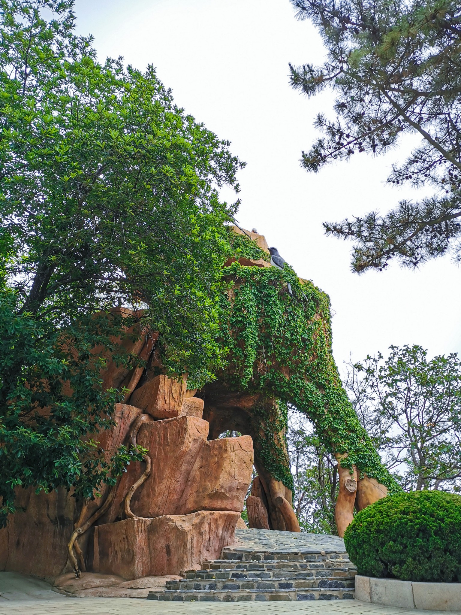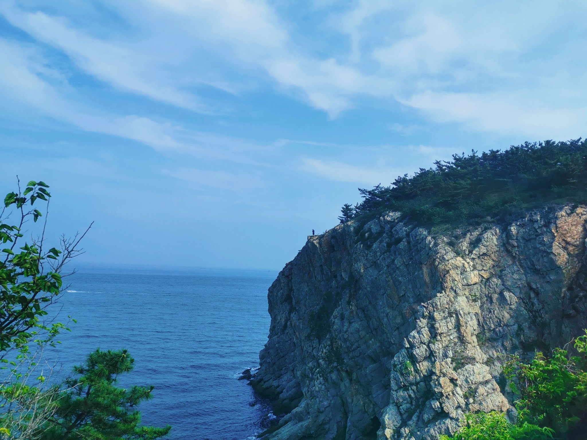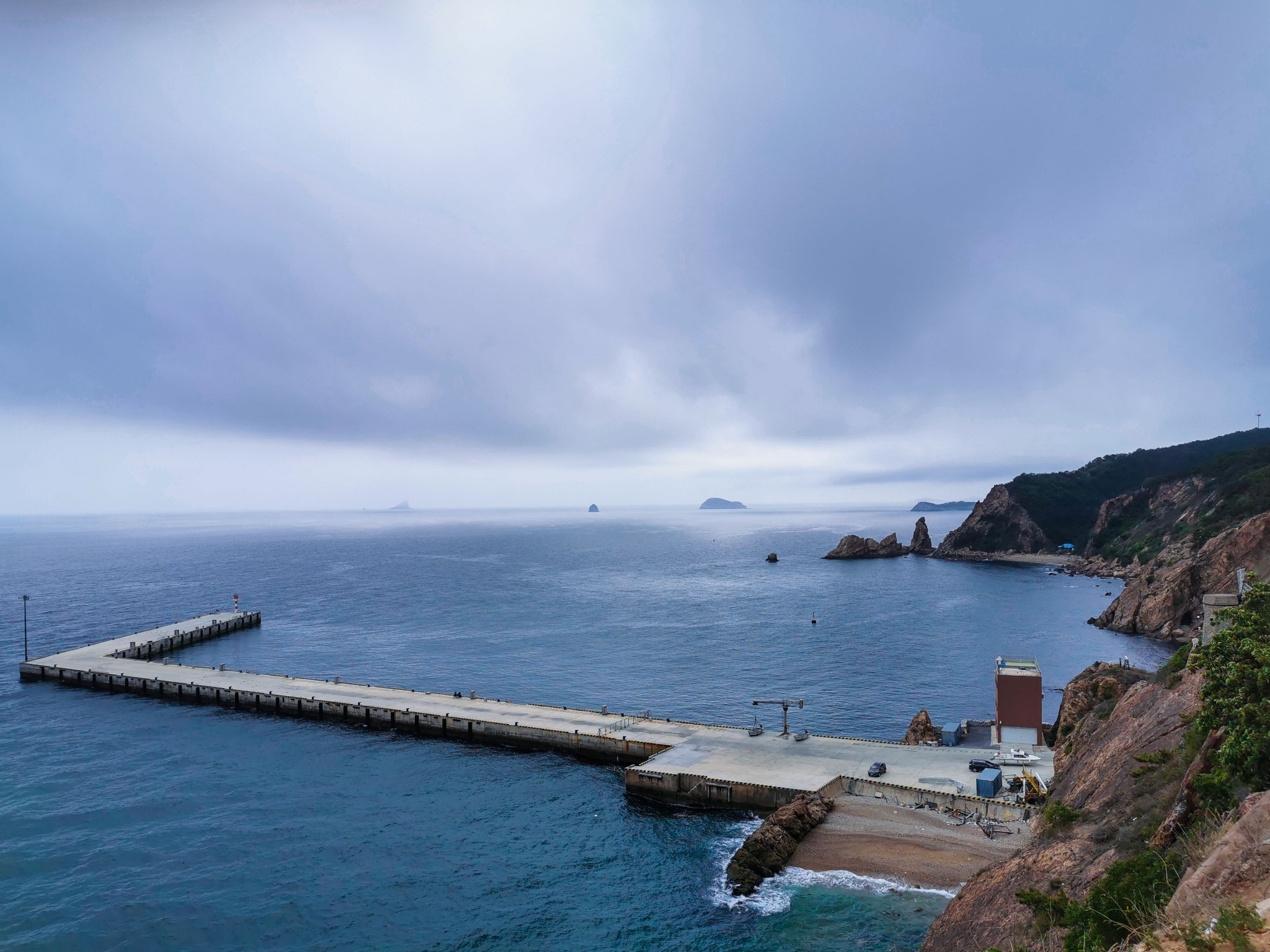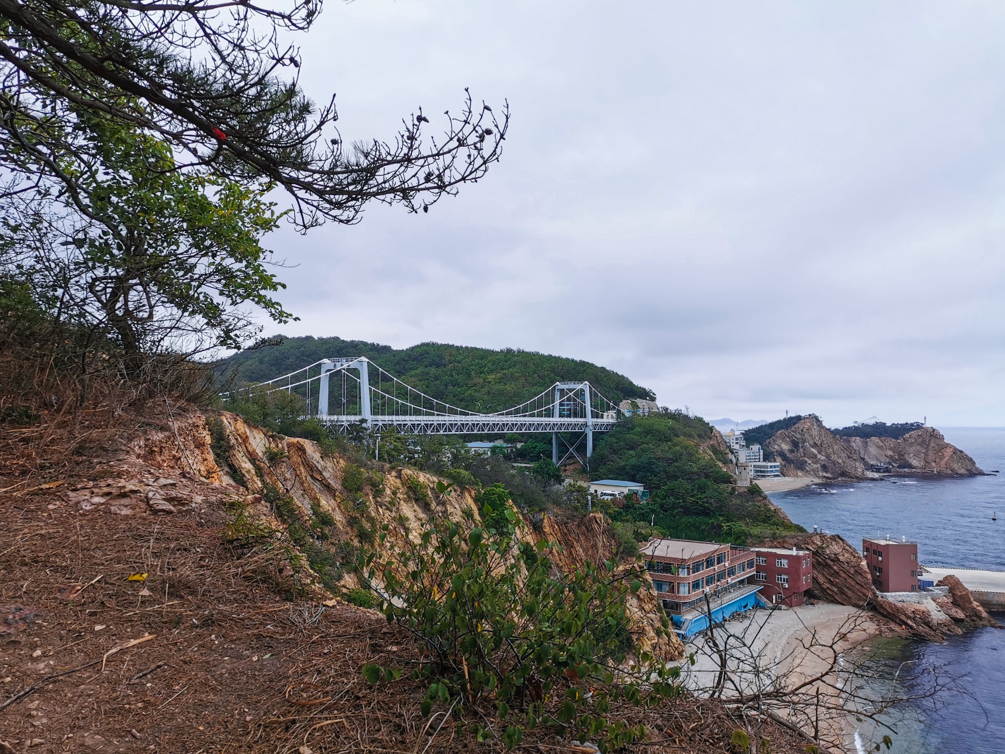 燕窝岭婚庆公园在山上,往西走有两个亭子,此处视野开阔,是看海的好地方。