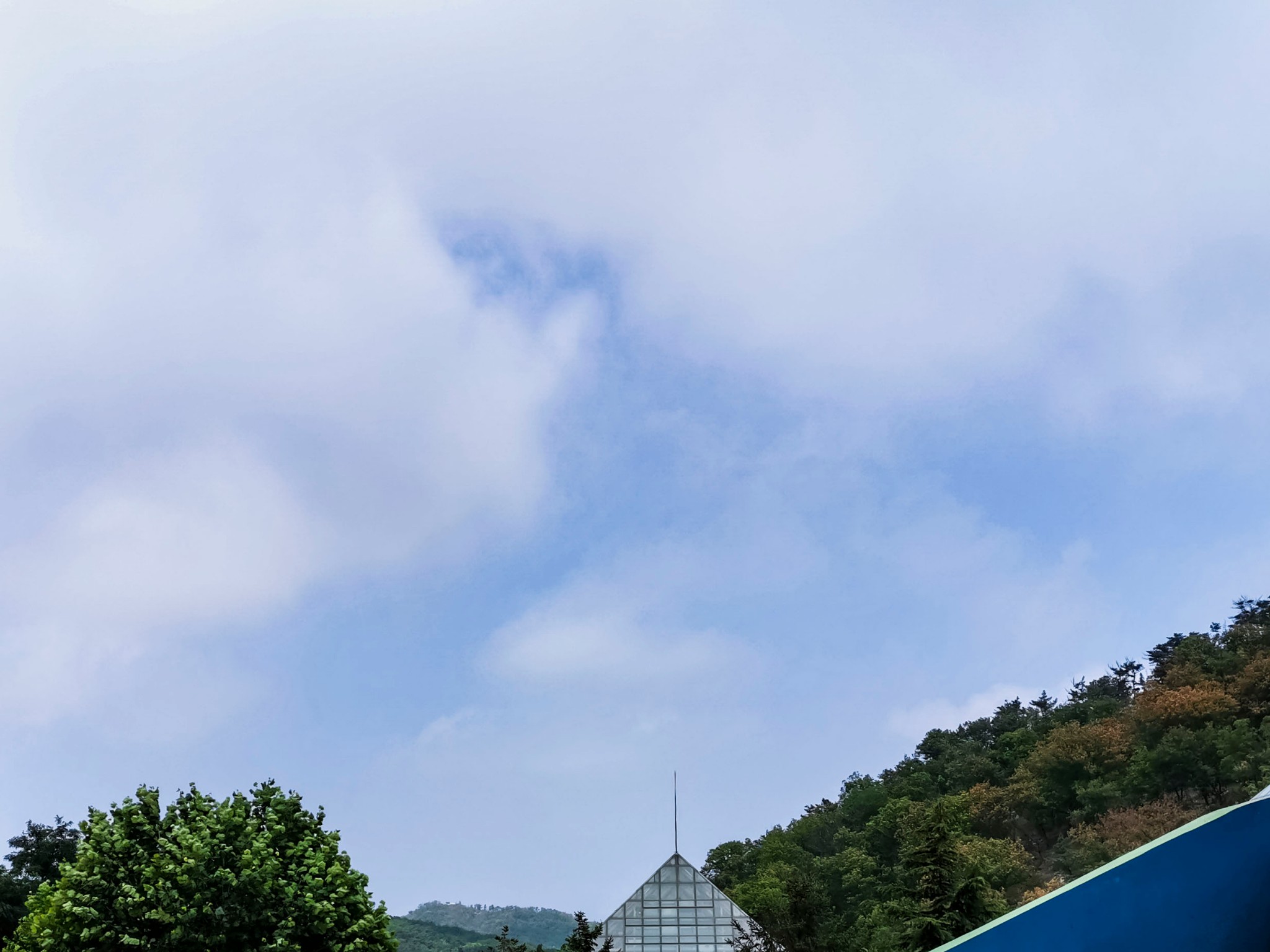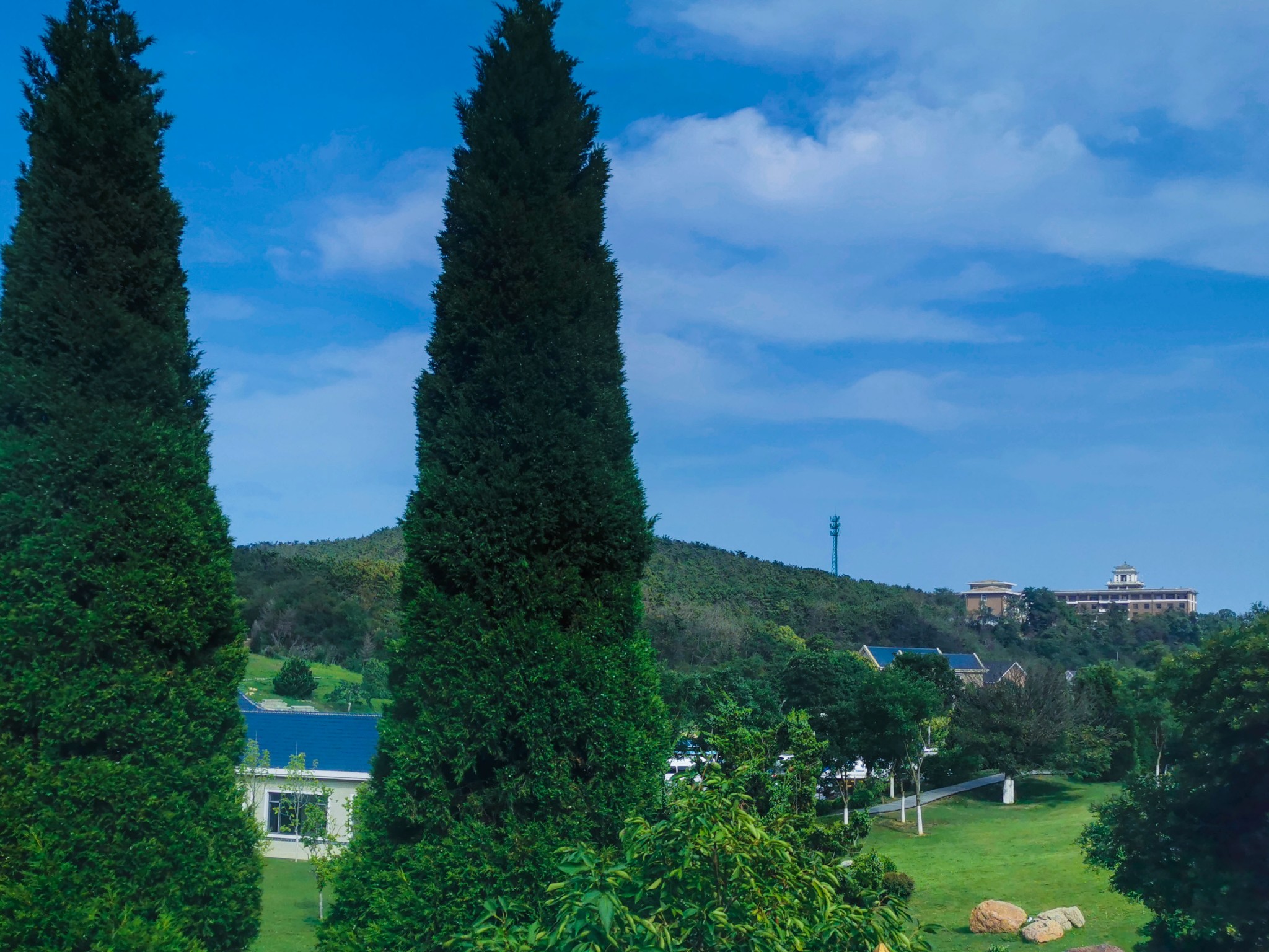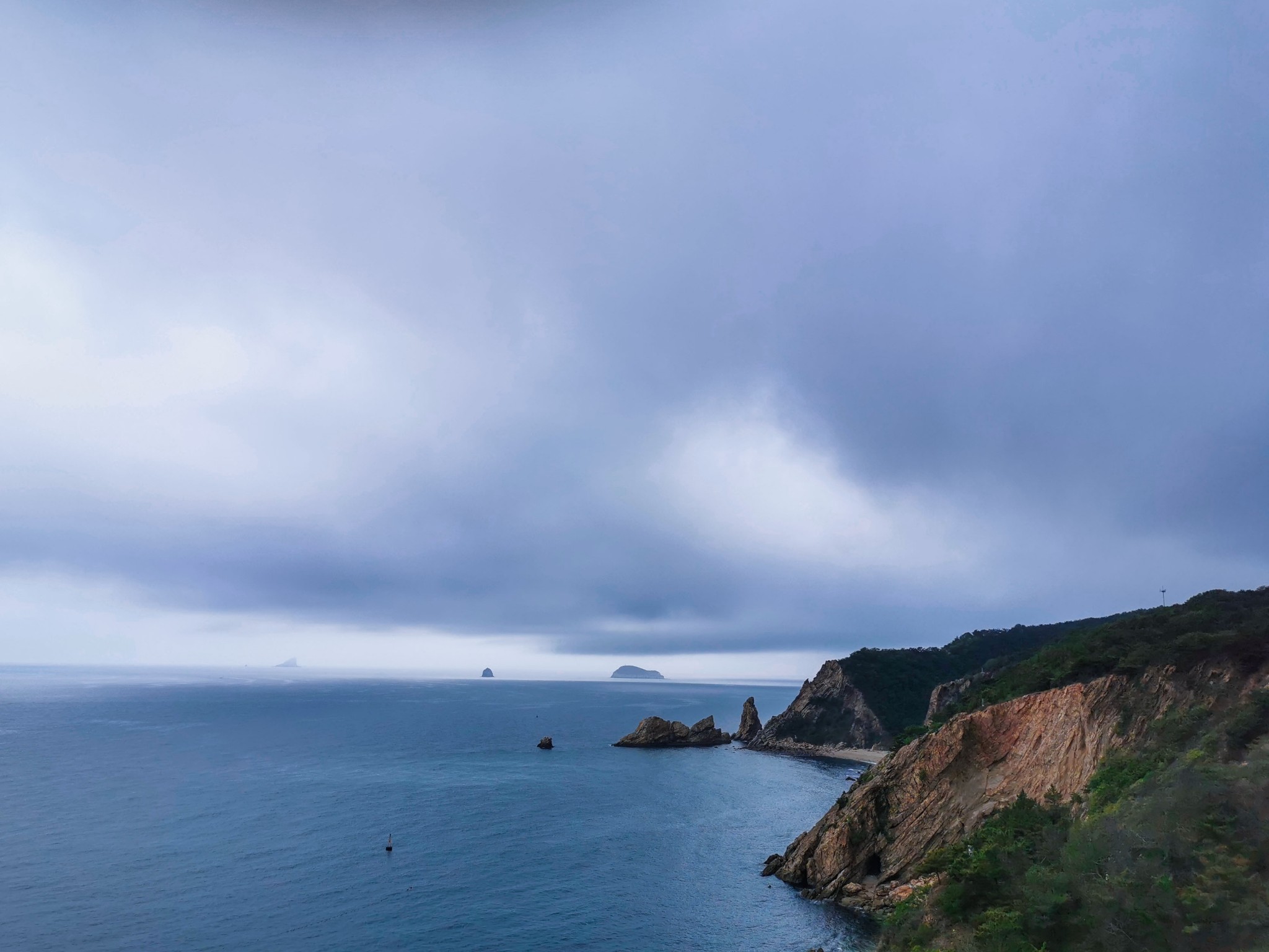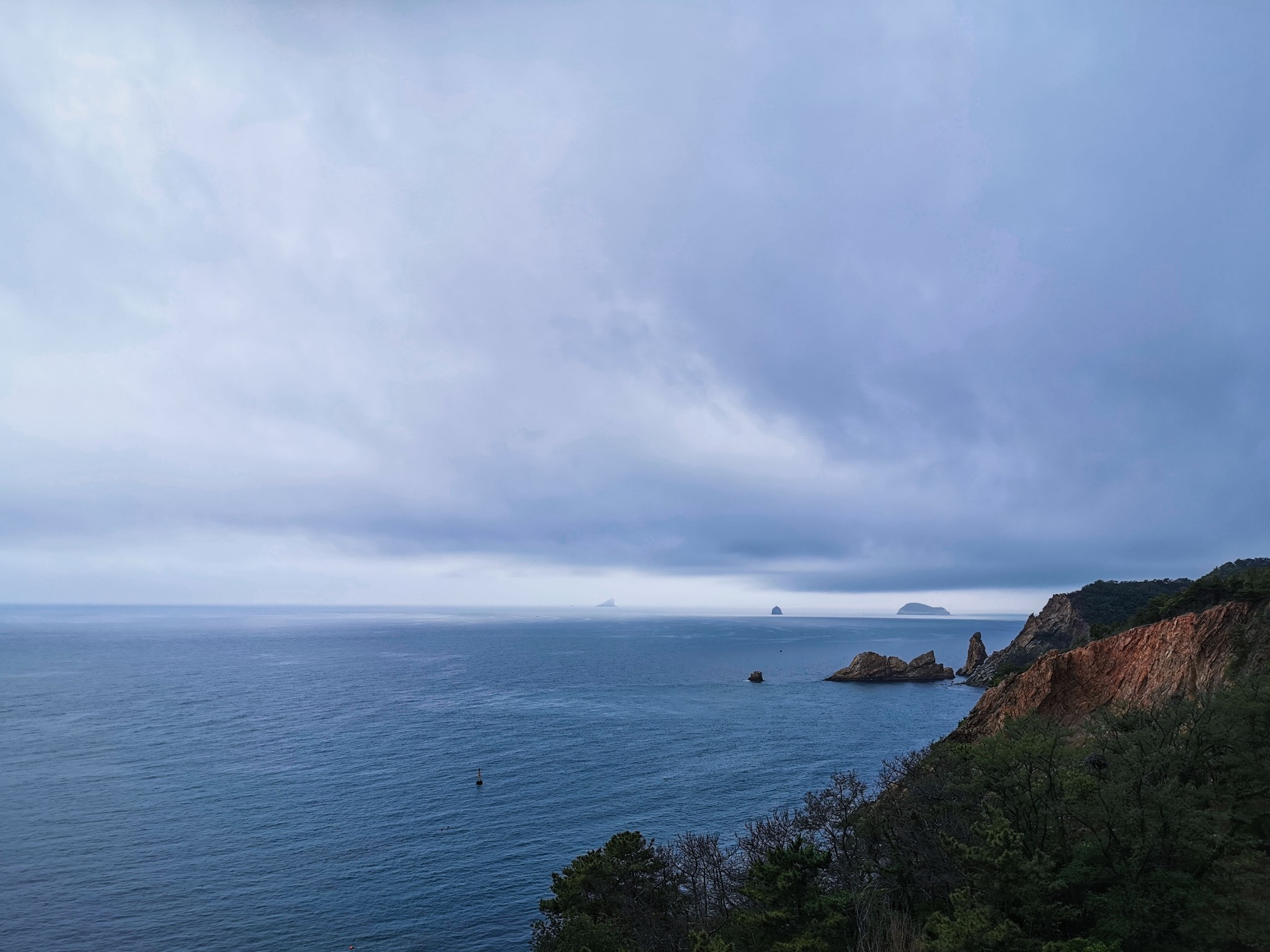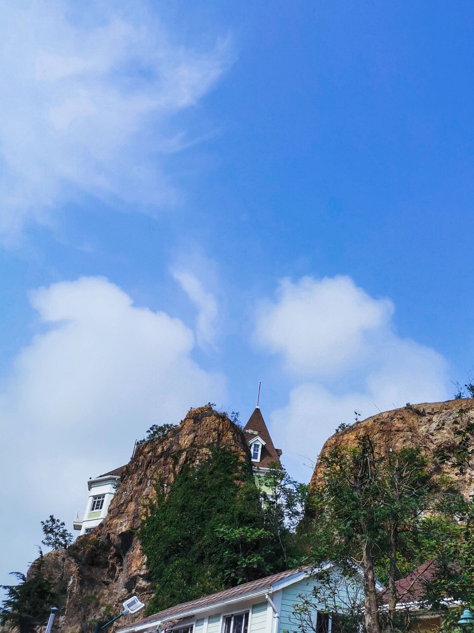 燕窝岭婚庆公园在山上,往西走有两个亭子,此处视野开阔,是看海的好地方。