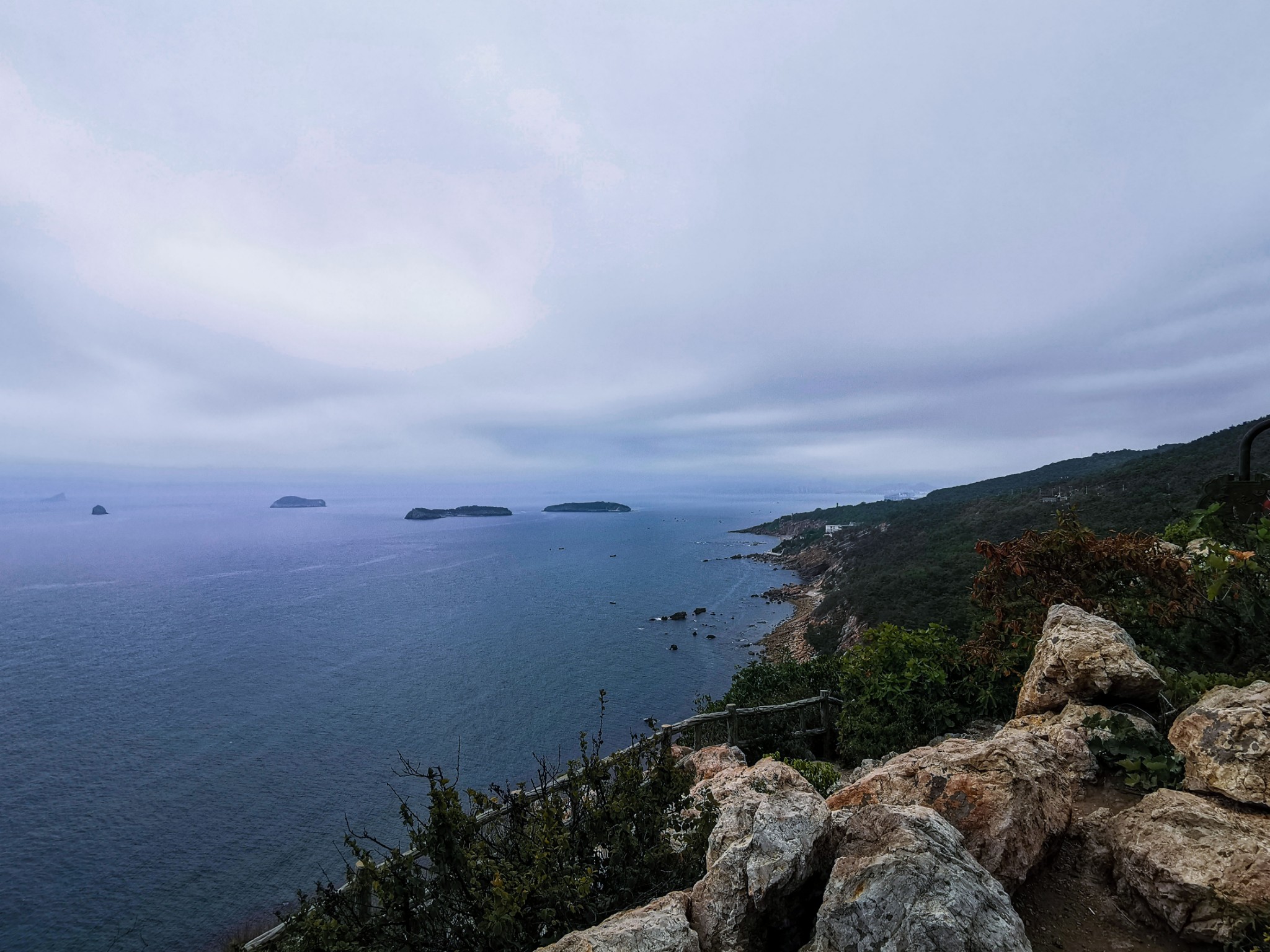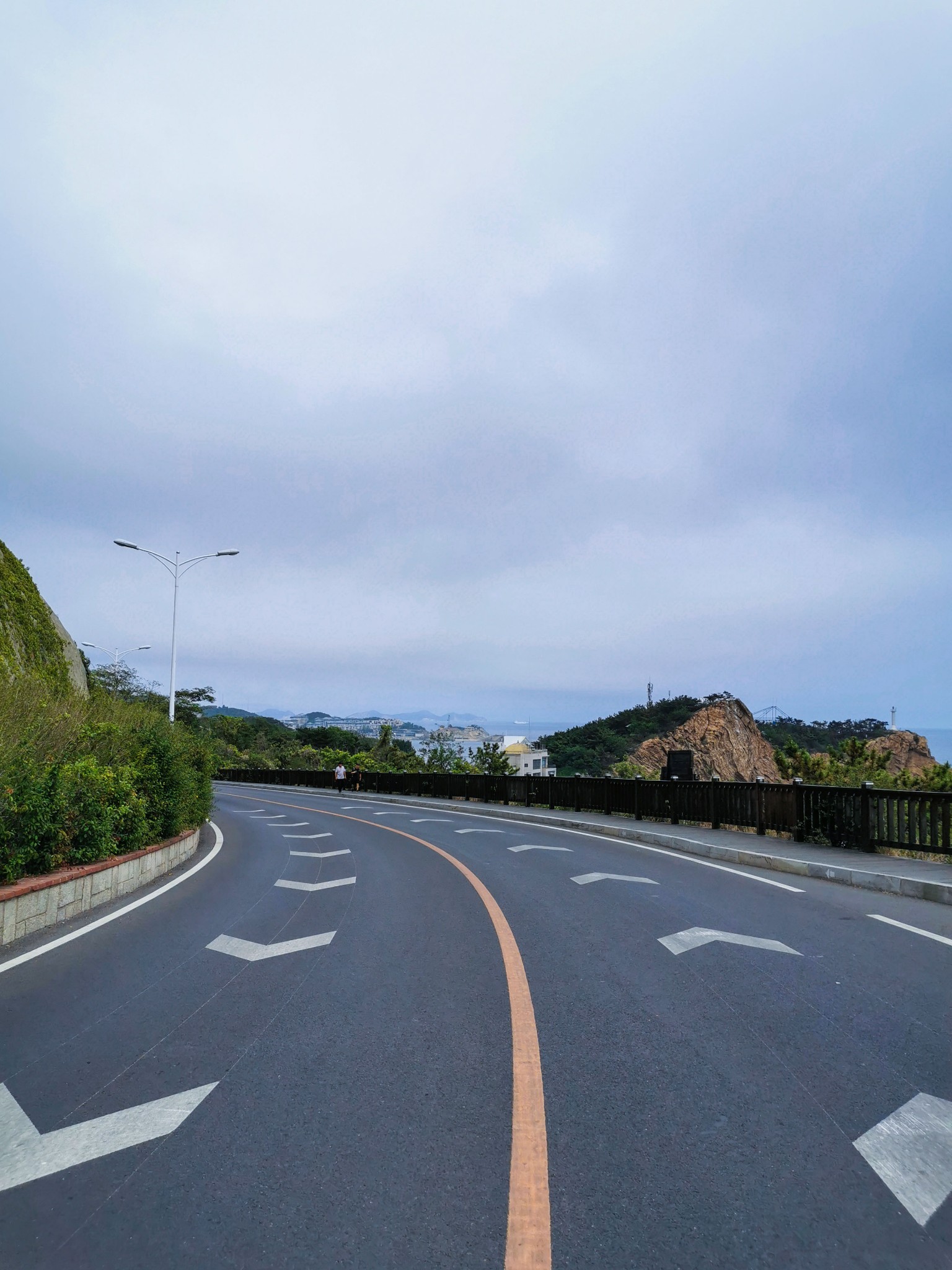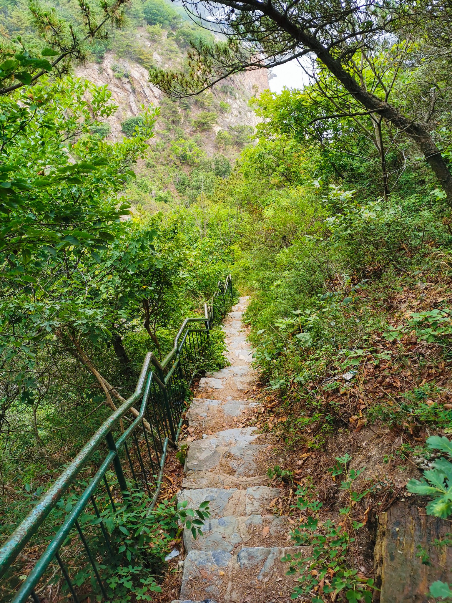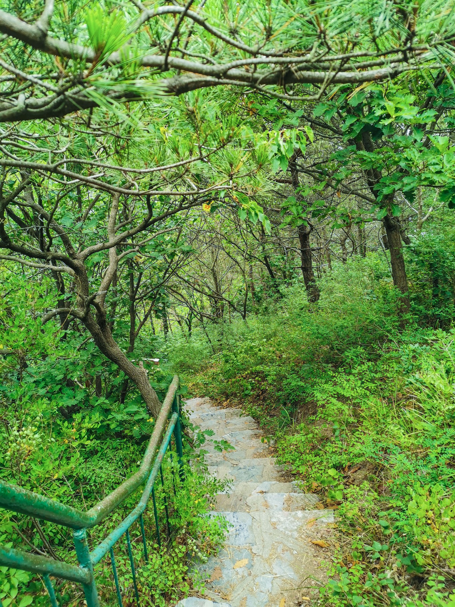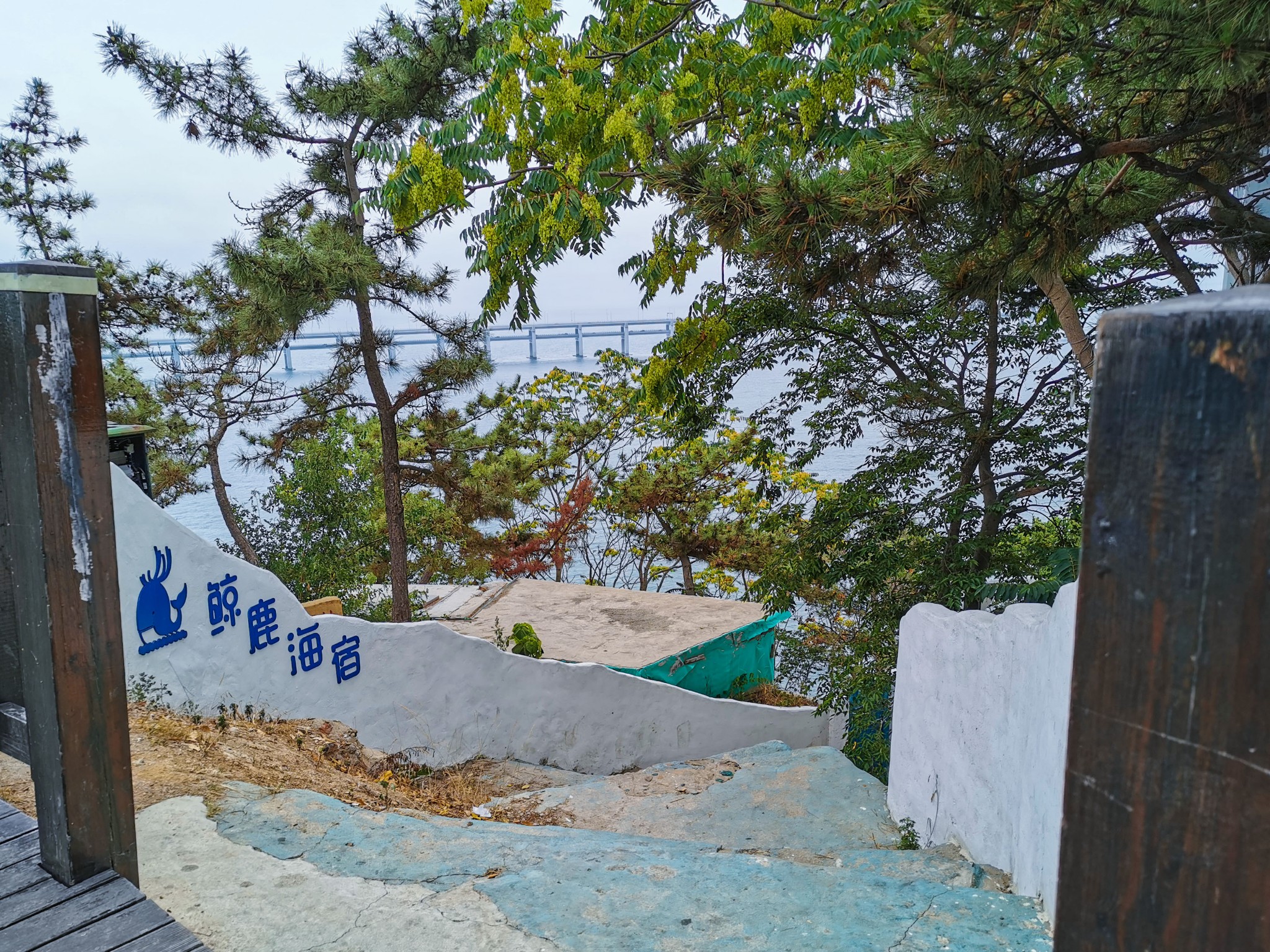坐在此处休息一下,补充点能量,准备沿着滨海路步行到北大桥。从燕窝岭到北大桥都是下坡路,距离也近,比较好走。看见了一条石阶小道,便沿着小路走下去了。