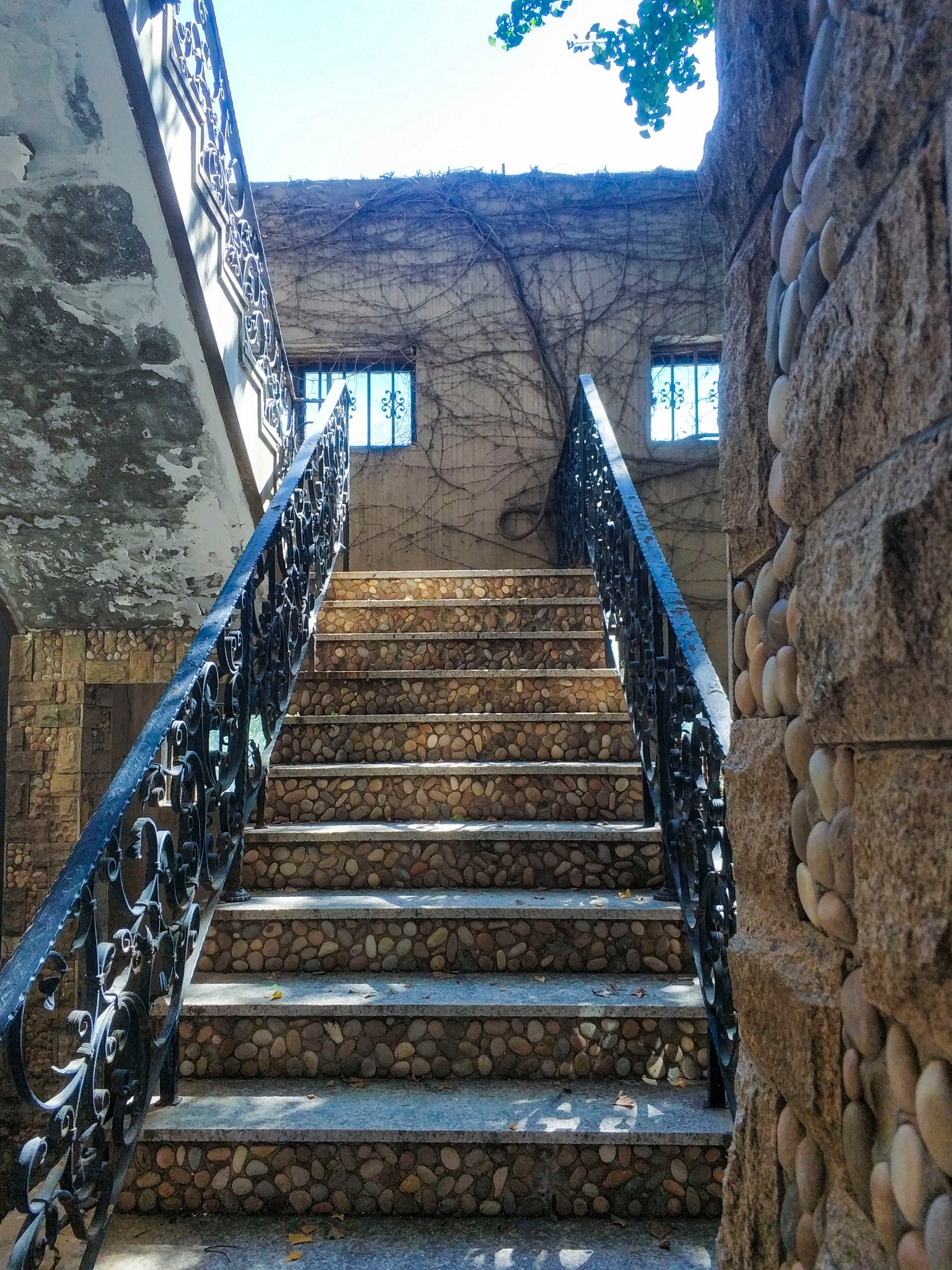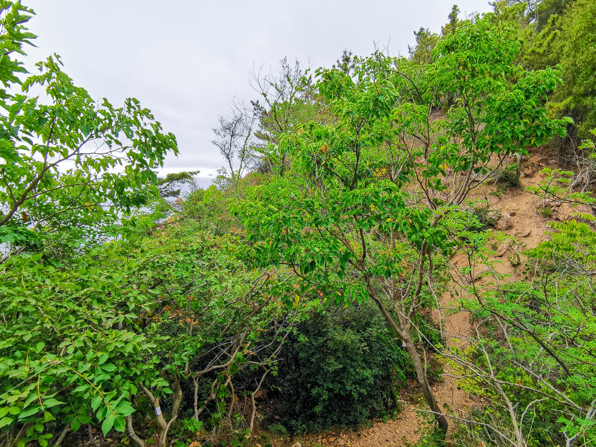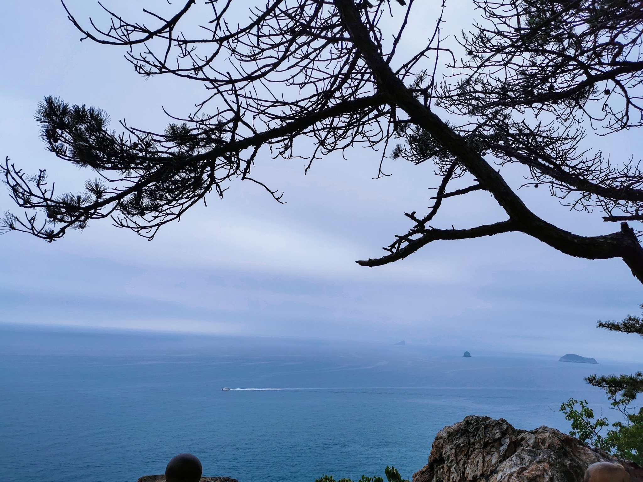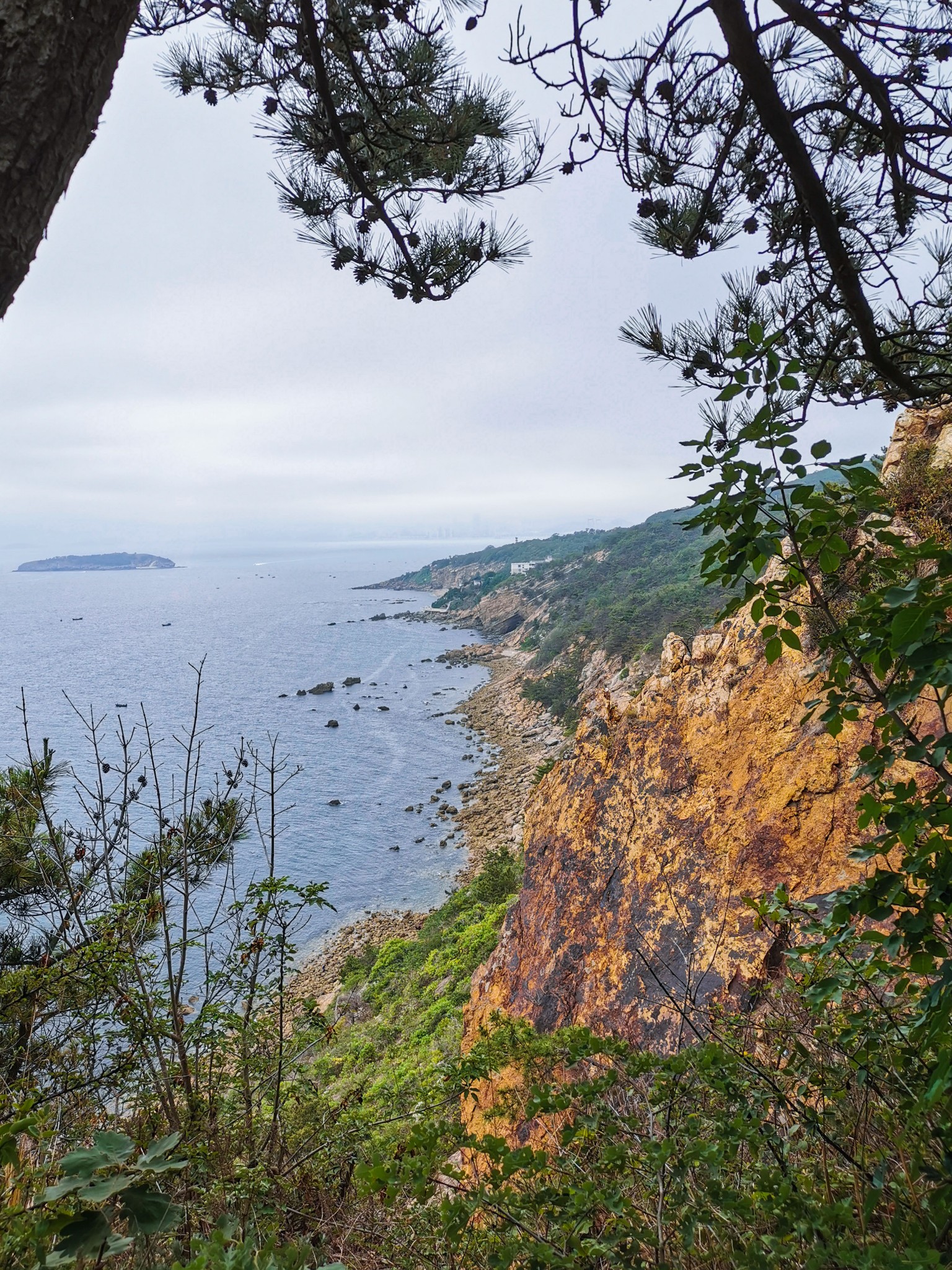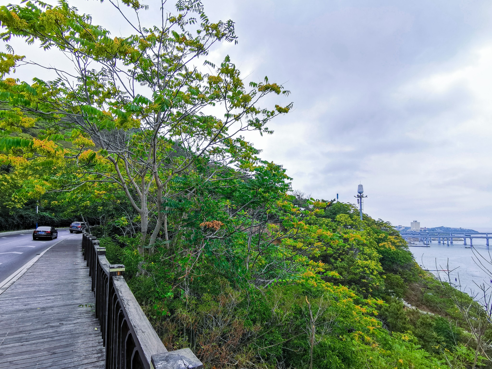坐在此处休息一下,补充点能量,准备沿着滨海路步行到北大桥。从燕窝岭到北大桥都是下坡路,距离也近,比较好走。看见了一条石阶小道,便沿着小路走下去了。