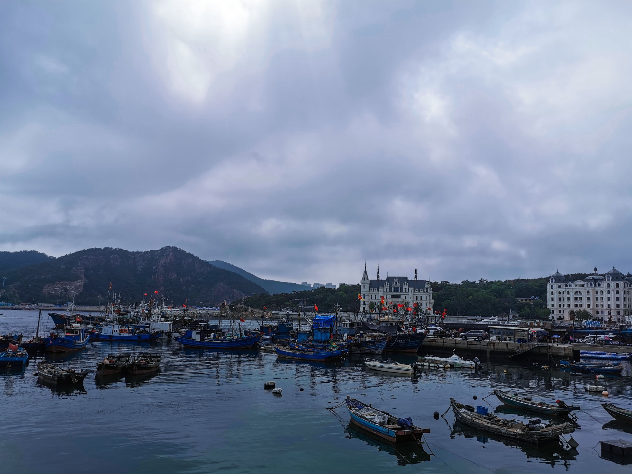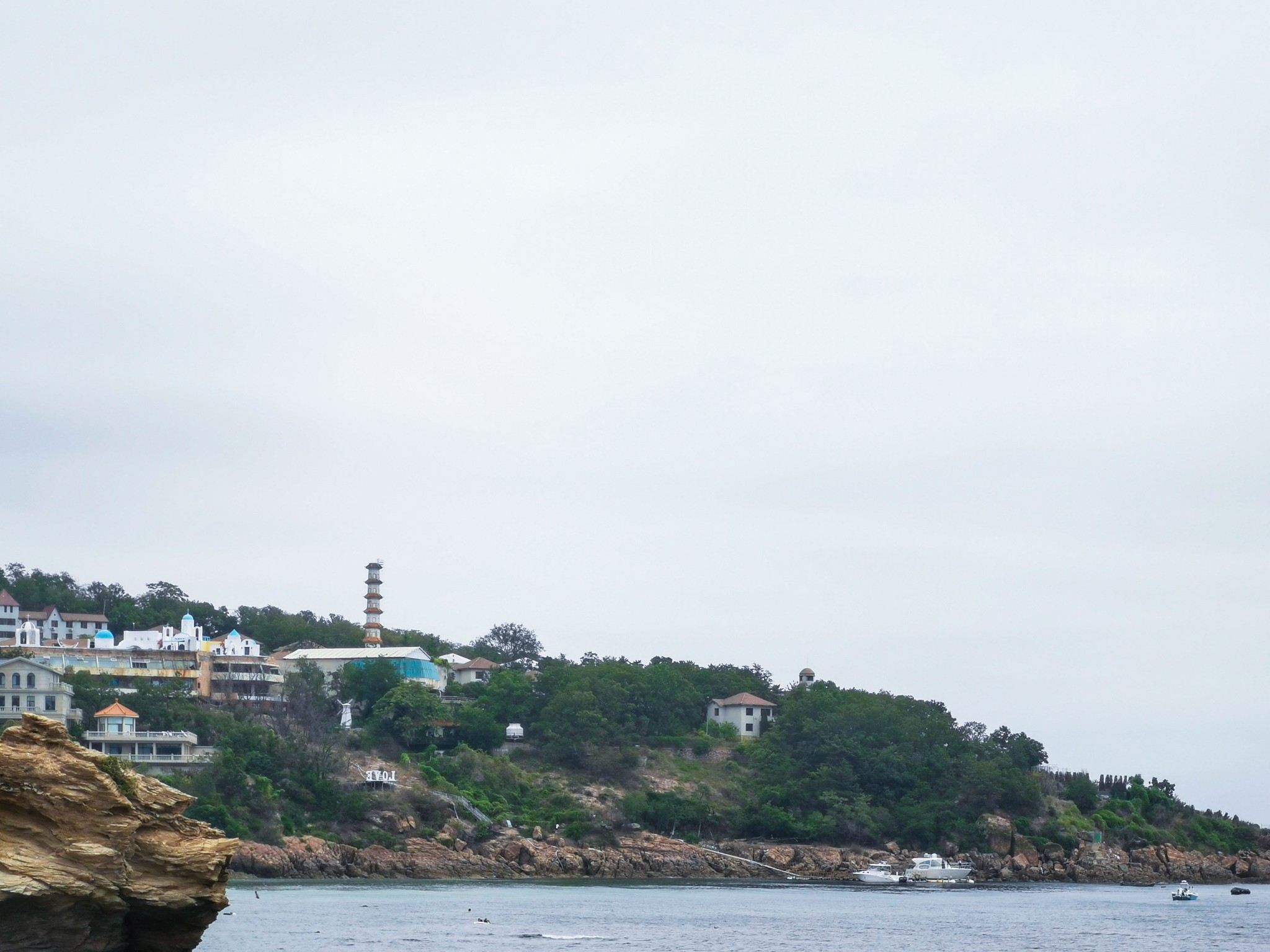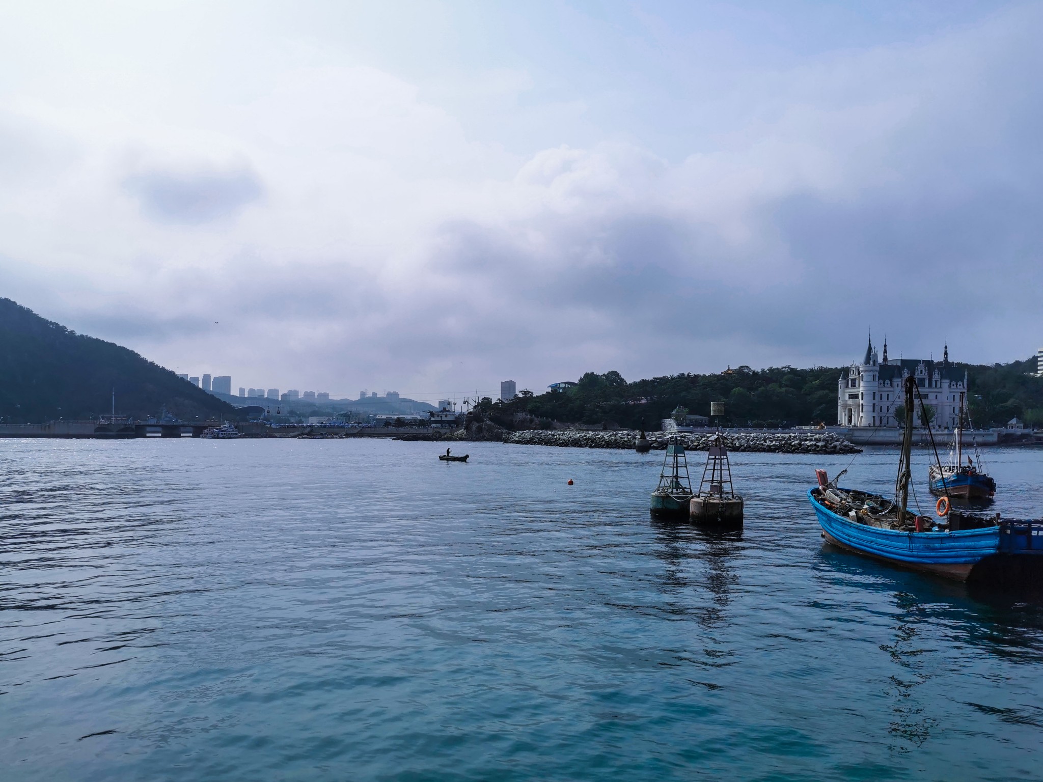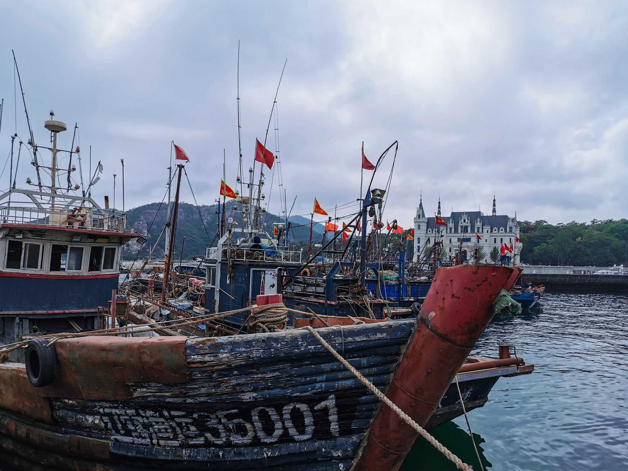 下车后就看见一排排 新建 的仿欧式建筑,不免有些失望,但沿着路穿过建筑,才来到了真正的码头。码头上停满了渔船,此处可以乘坐游船出海喂海鸥游览。沿着栈道走,竟见到一群老大爷裸泳。 ̄^ ̄゜