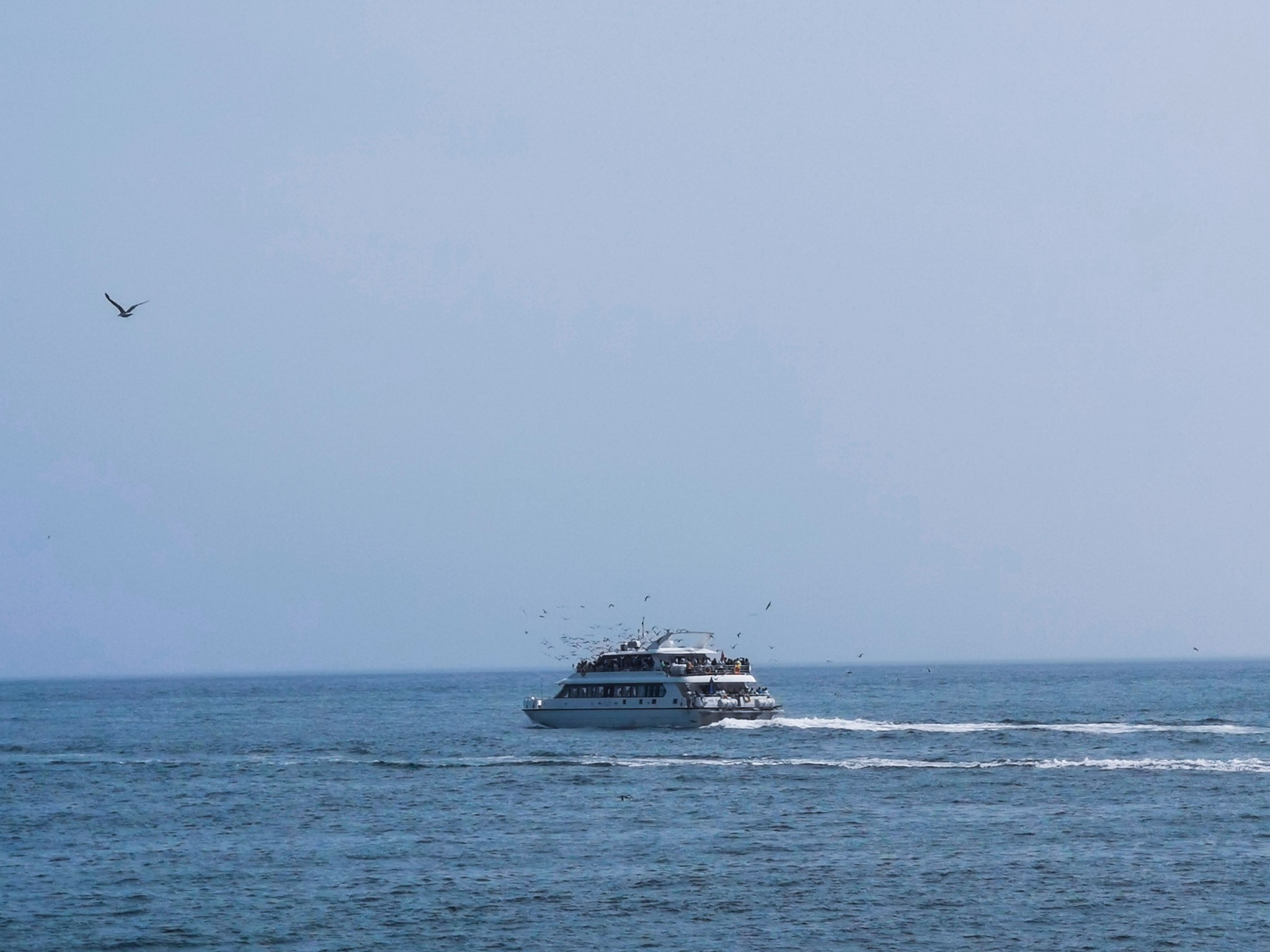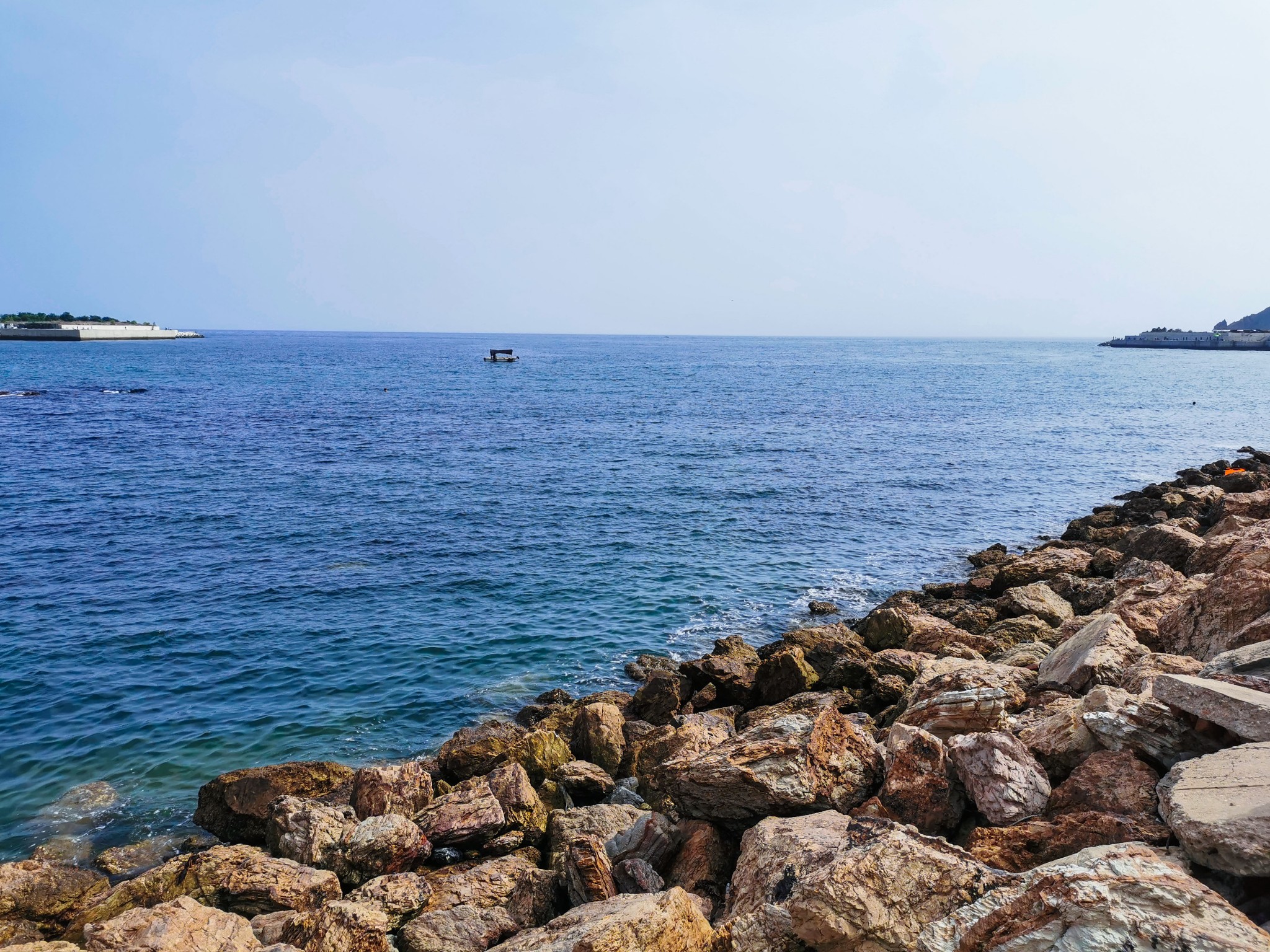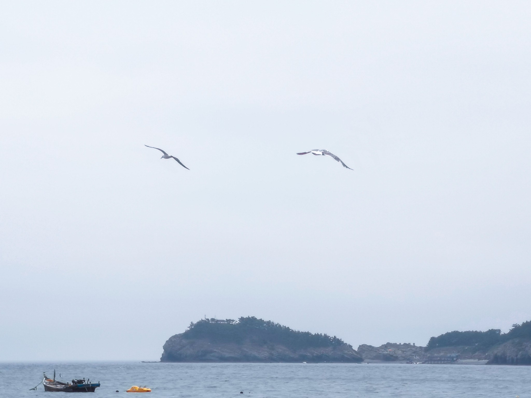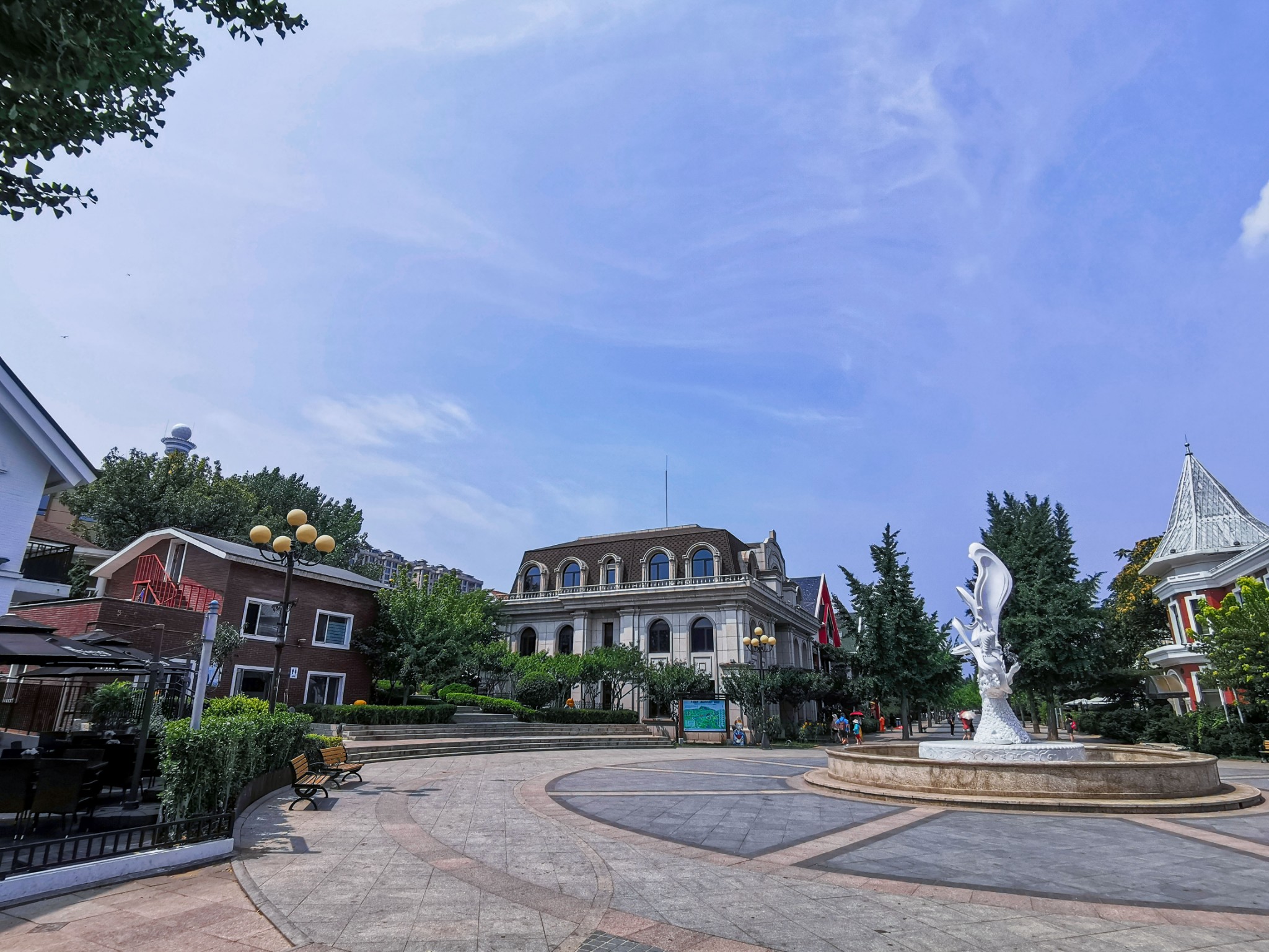 下车后就看见一排排 新建 的仿欧式建筑,不免有些失望,但沿着路穿过建筑,才来到了真正的码头。码头上停满了渔船,此处可以乘坐游船出海喂海鸥游览。沿着栈道走,竟见到一群老大爷裸泳。 ̄^ ̄゜