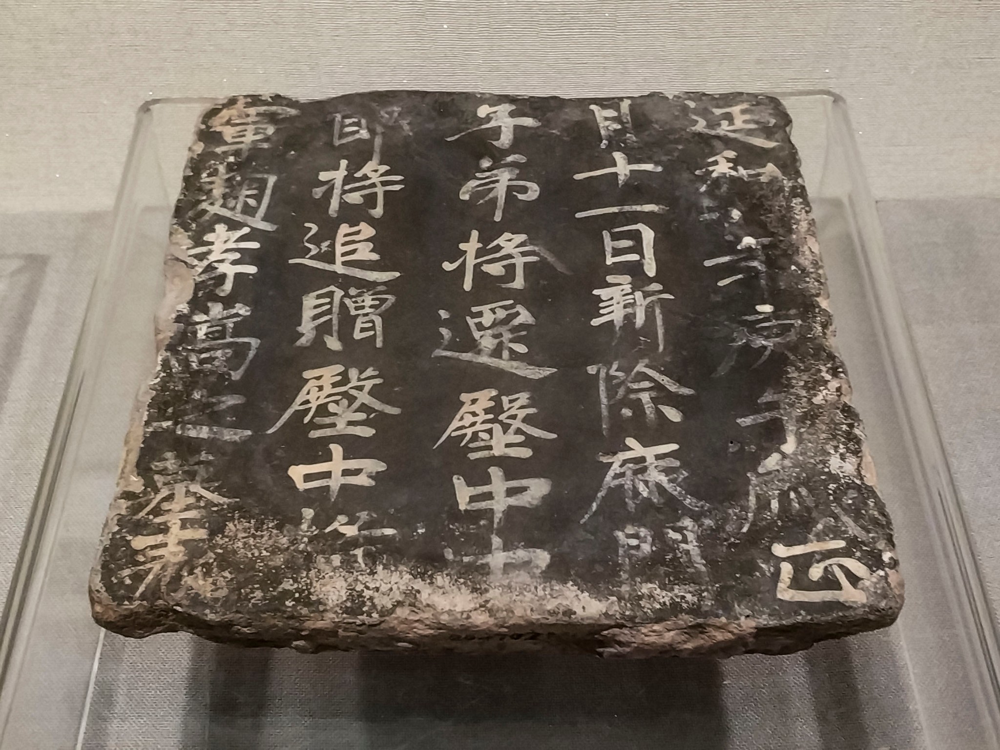 青灰色,近正方形。表面以墨色打底,书乳黄色楷体表文,直书5行37字,结构开张,书写自然。文中延和为高昌第八代王麴伯雅年号,延和九年即公元610年。