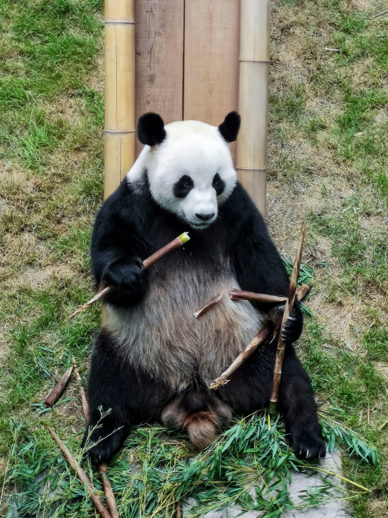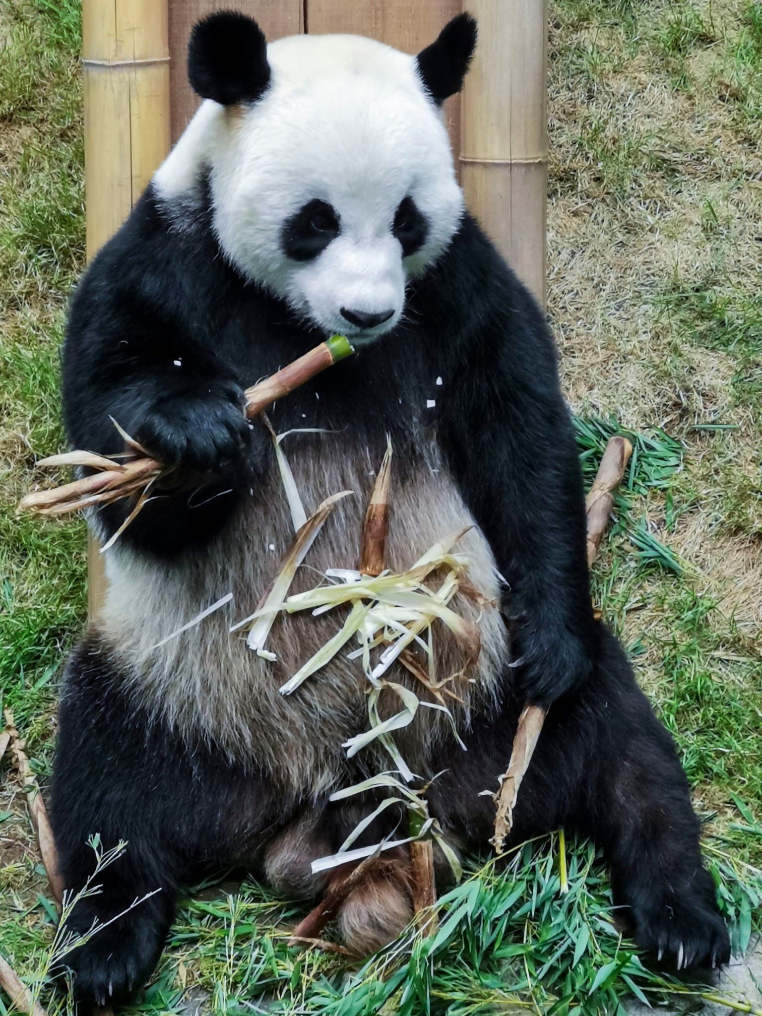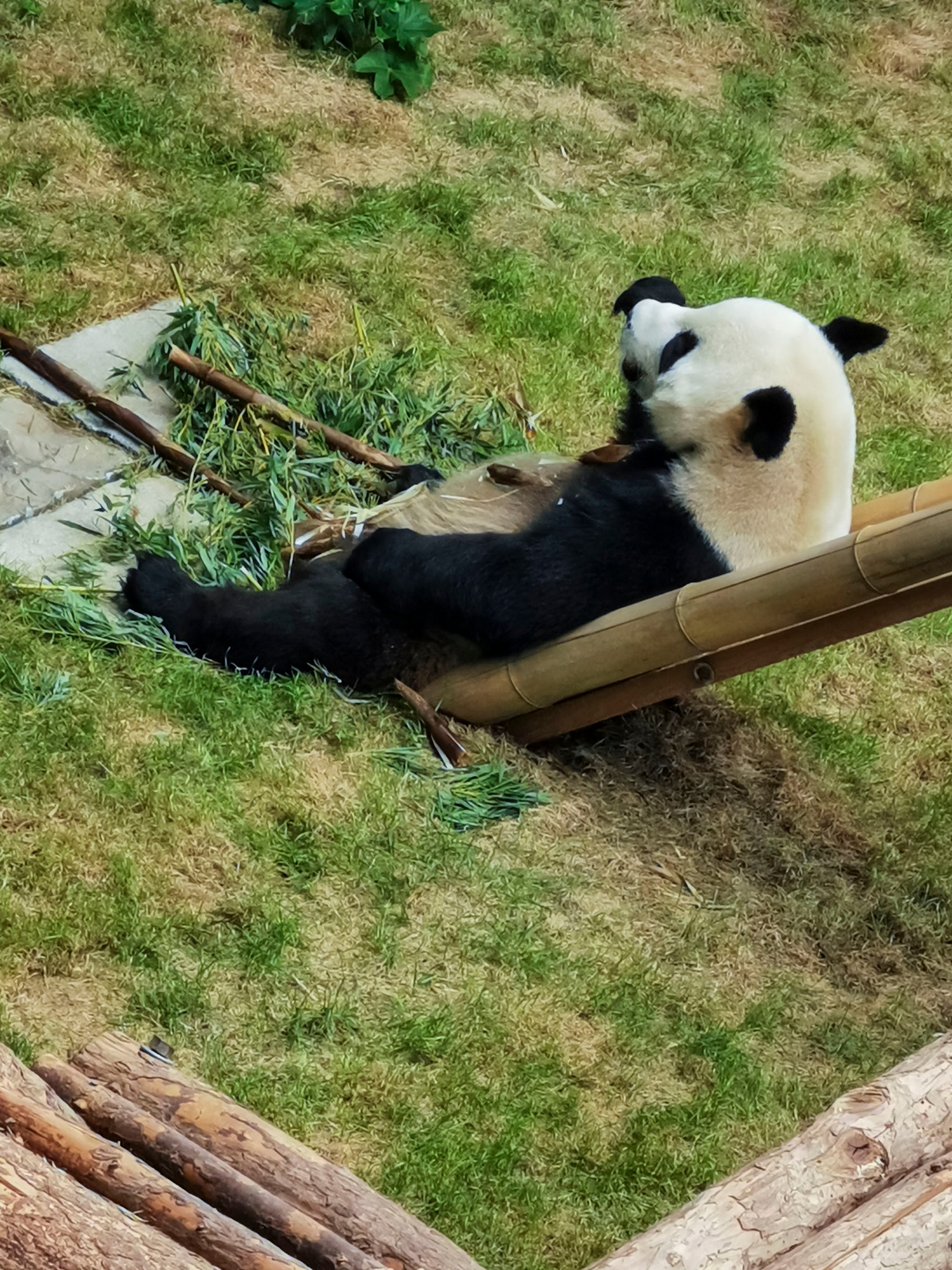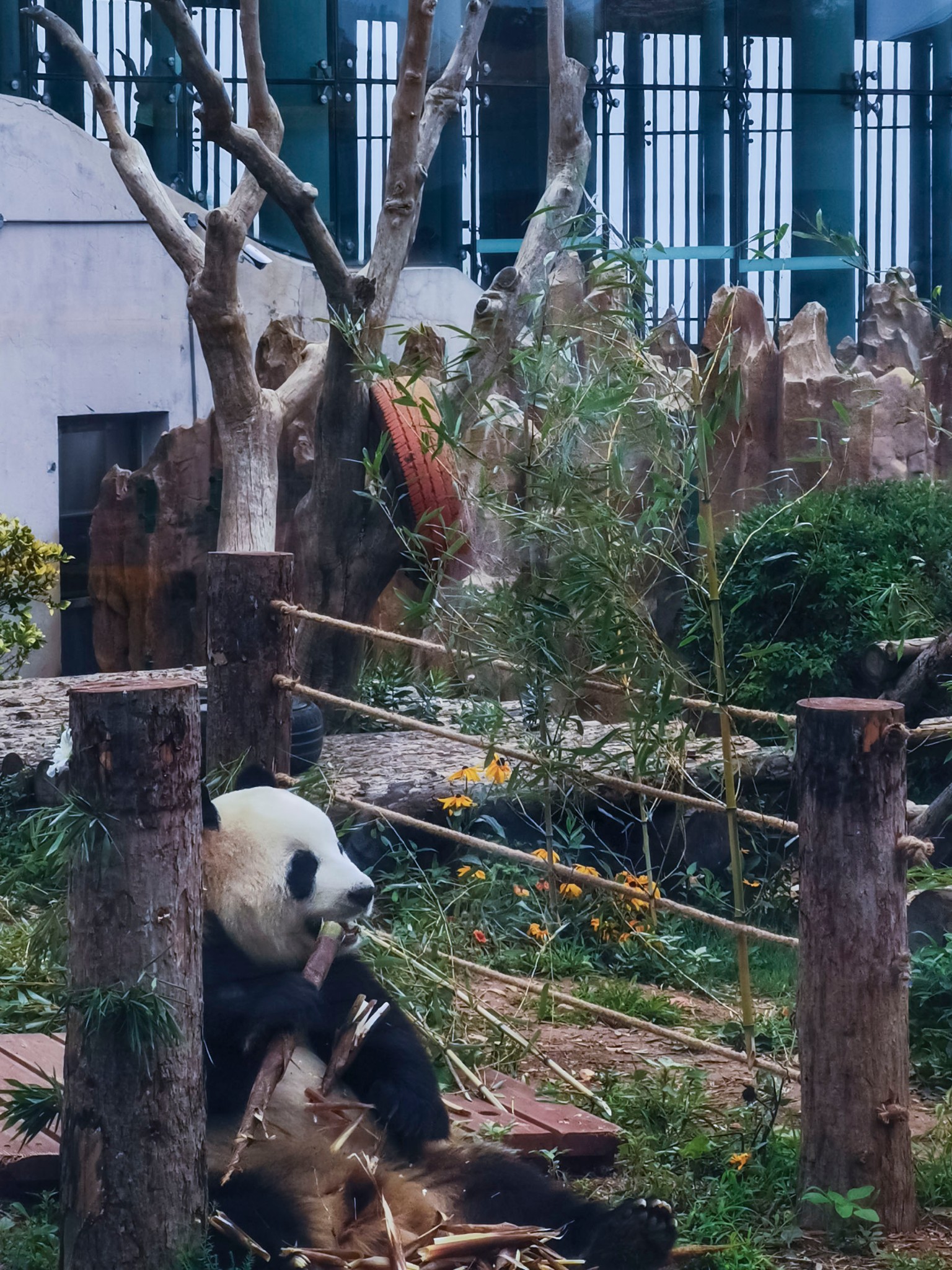 大熊猫不够小熊猫来凑,熊猫馆里除了三只大熊猫,还有许多小熊猫,但小熊猫待遇待遇就不如国宝了,大熊猫悠闲自在地在屋里吹着空调,或吃着竹笋,或睡懒觉,小熊猫在室外热得直伸舌头。